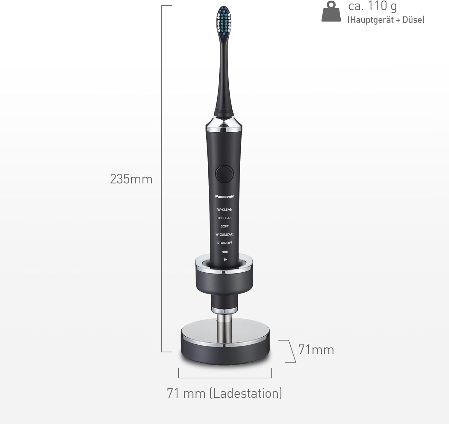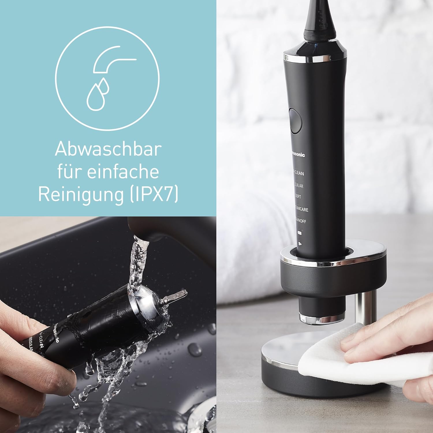 Panasonic EW-DP52-K803 Wiederaufladbare elektrische Zahnbürste, extrafein, Multi-Fit, Anti-Verfärbung, Spitzen- & Silikonbürsten, Ladestation, Schallvibration, LED-Anzeige, 90 Min Laufzeit, Schwarz | قیمت یورویی 185.63€