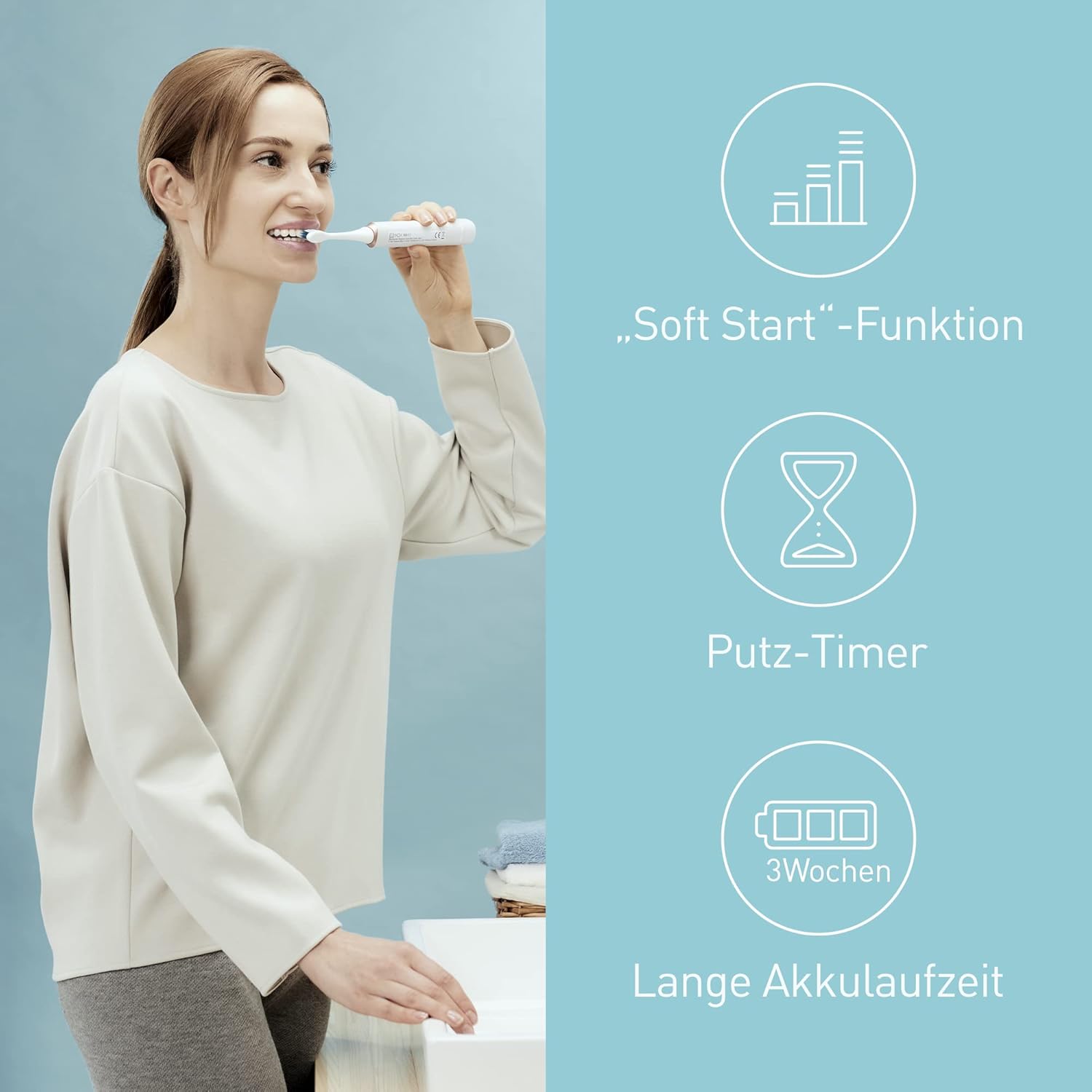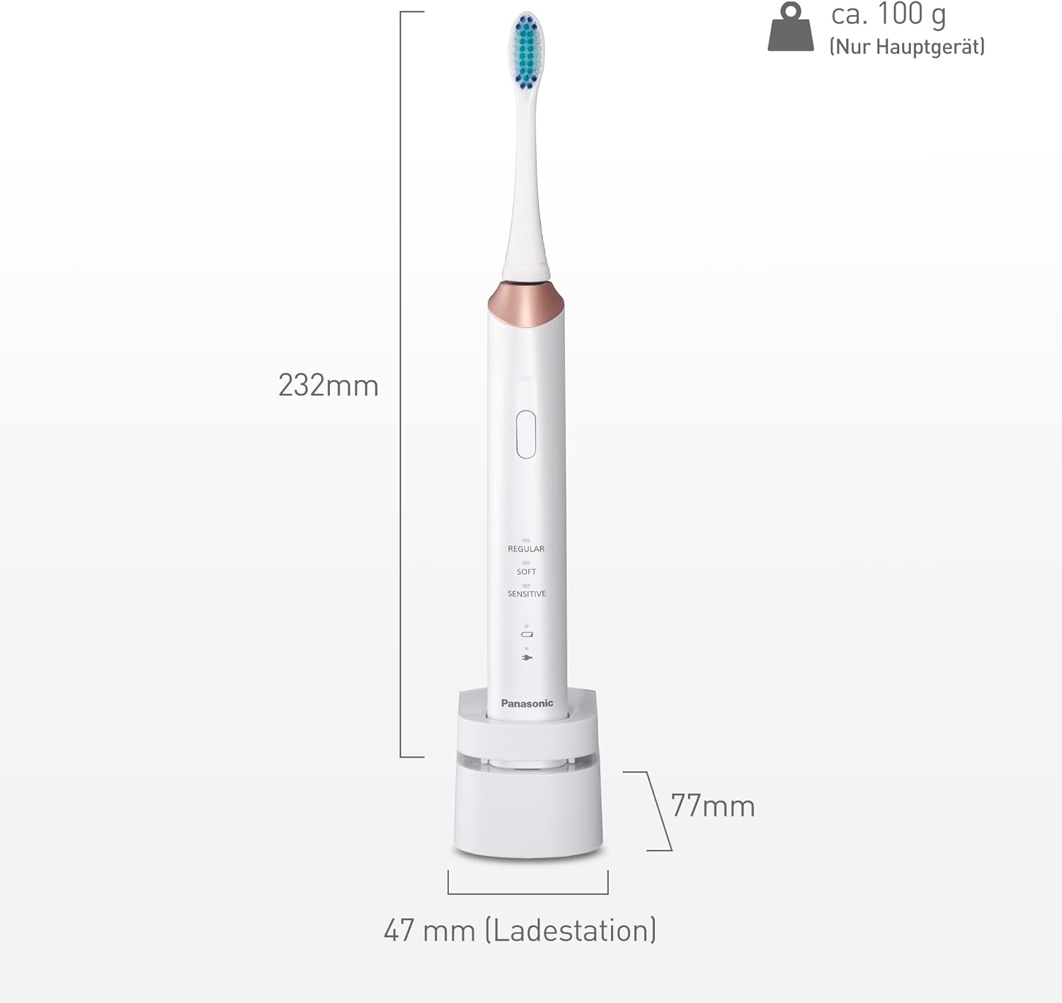 Panasonic EW-DC12 Elektrische Zahnbürste mit Schallschwingungen, 3 Verwendungsmodi, horizontal, perfekt für die Pflege von Zahnfleischtaschen, Weiß-Rosé | قیمت یورویی 69.49€