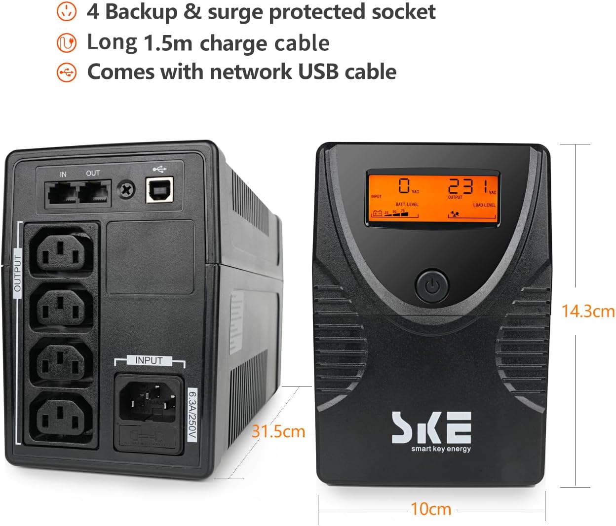 SKE USV 425VA/240W Unterbrechungsfreie Stromversorgung USV 230V für Computer Router UPV Stromversorgung UPS PC Akku Stromausfall | قیمت یورویی 44.99€
