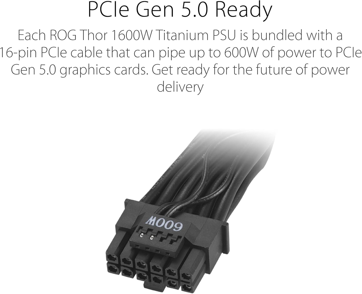 منبع تغذیه تیتانیومی ایسوس ROG Thor 1600W (1600 وات، نورپردازی Aura Sync RGB، نمایشگر OLED، سازگار با PCIe 5.0، ترانزیستورهای گالیوم نیترید، کنترل دیجیتال و خازنهای Low-ESR) ROG Thor 1600W مشکی