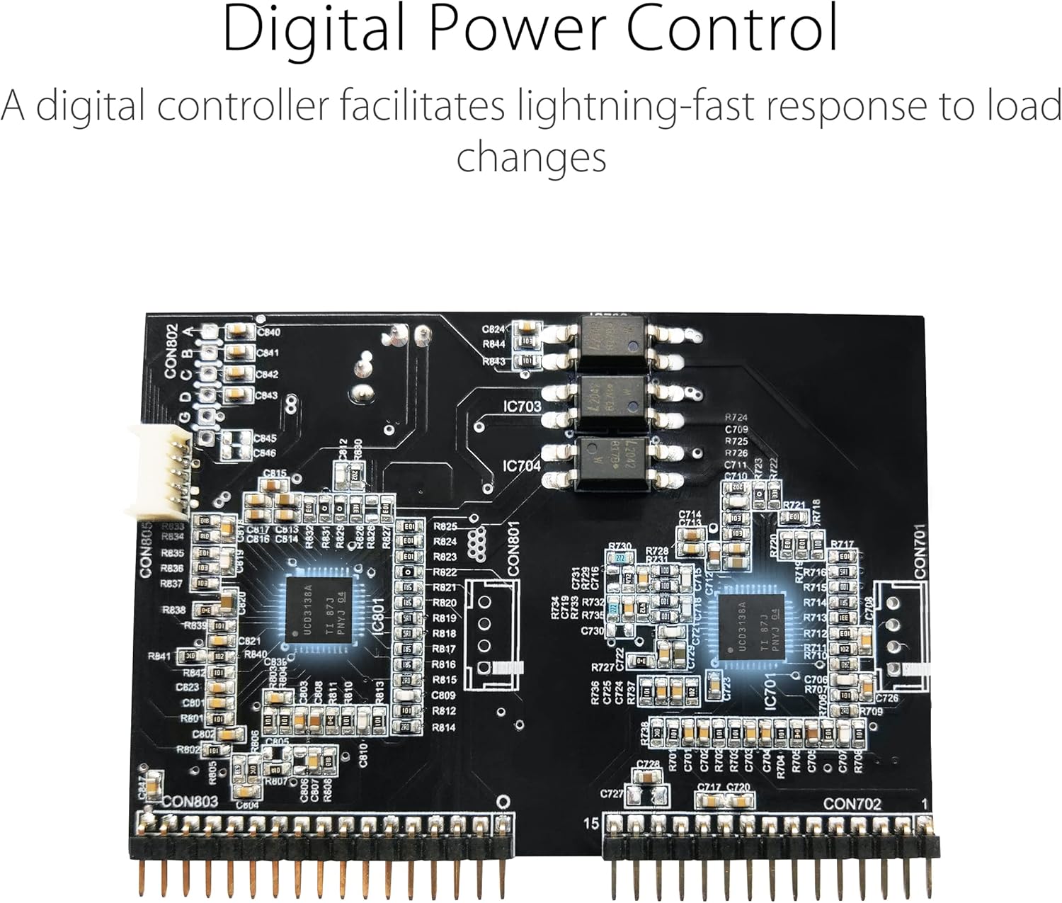 Die Lambda A++ Zertifizierung bestätigt, dass das neueste Thor eine Macht in absoluter Unauffälligkeit ausübt Die Galliumnitrid-MOSFETs im 1600-Watt-Thor erzeugen enorme Stromstärken, ohne unnötig viel Energie zu verschwenden Ein 135-mm-Axial-Tech-Lüfter mit PWM-Steuerung sorgt für eine geringere Geräuschentwicklung und hält die Wärmeentwicklung in Schach Hergestellt mit 100% japanischen Kondensatoren und anderen hochwertigen Komponenten, um die 80 Plus Platinum Zertifizierung zu erhalten Das OLED-Display überwacht den Stromverbrauch in Echtzeit | قیمت یورویی : 609€