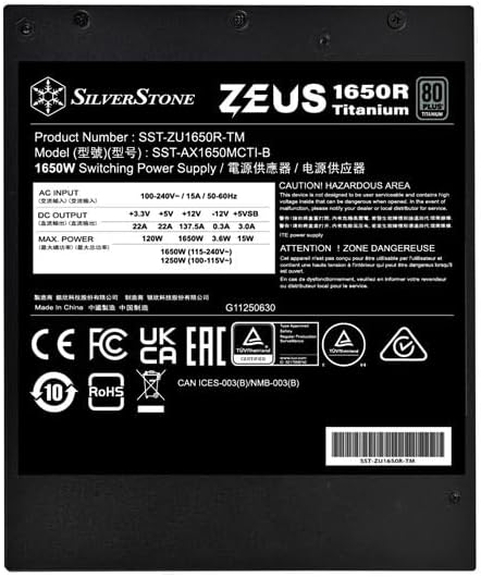 SilverStone Technology Zeus 1650R Titanium, 80 PLUS-Titanium-1650-W-ATX-3.1- und vollständig modulares PCIe-5-ATX-Netzteil, SST-ZU1650R-TM | قیمت یورویی 479€