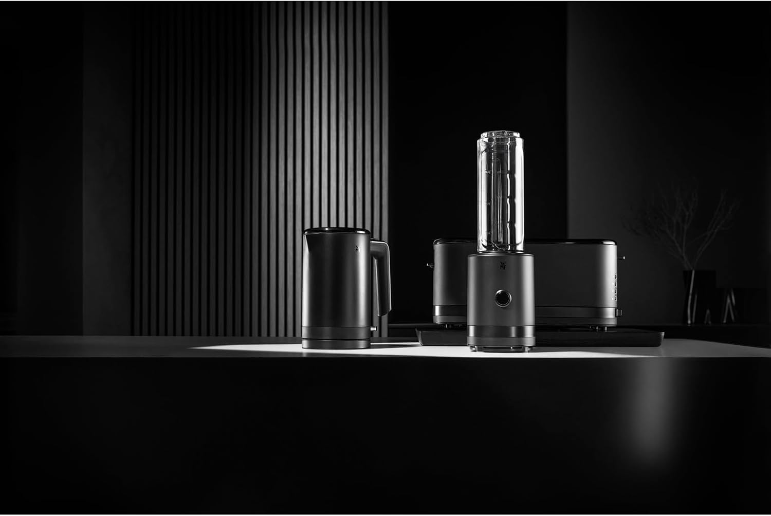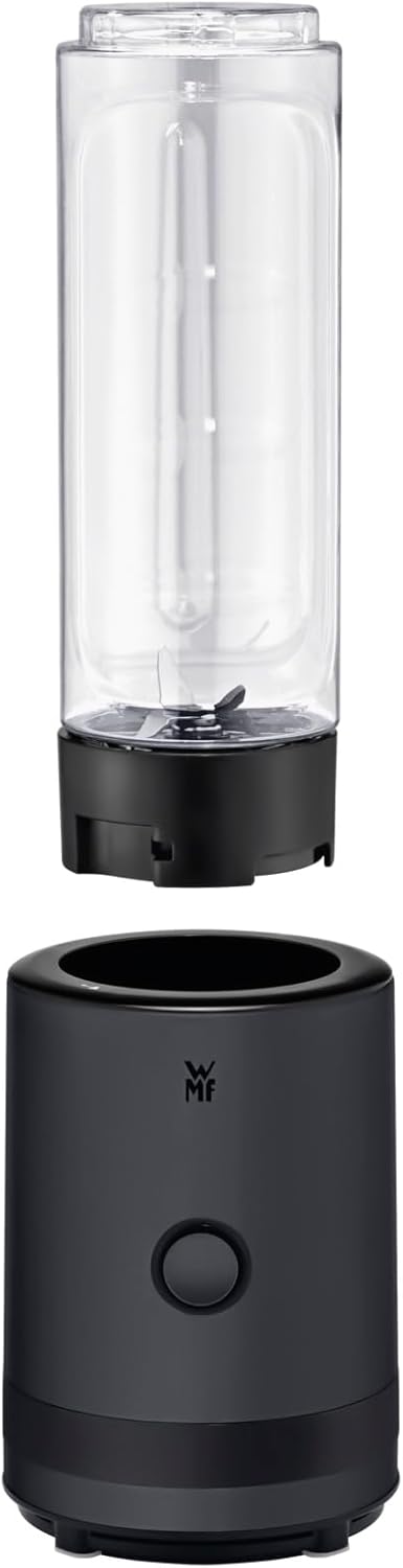 WMF Küchenminis Smoothie-to-go, Mini Standmixer mit zwei Mix-/Trinkbehältern 0,6l, Mixer Hochleistungsmixer 300 W, edelstahl matt, schwarz Schwarz Smoothie-to-go | قیمت یورویی 56.15€