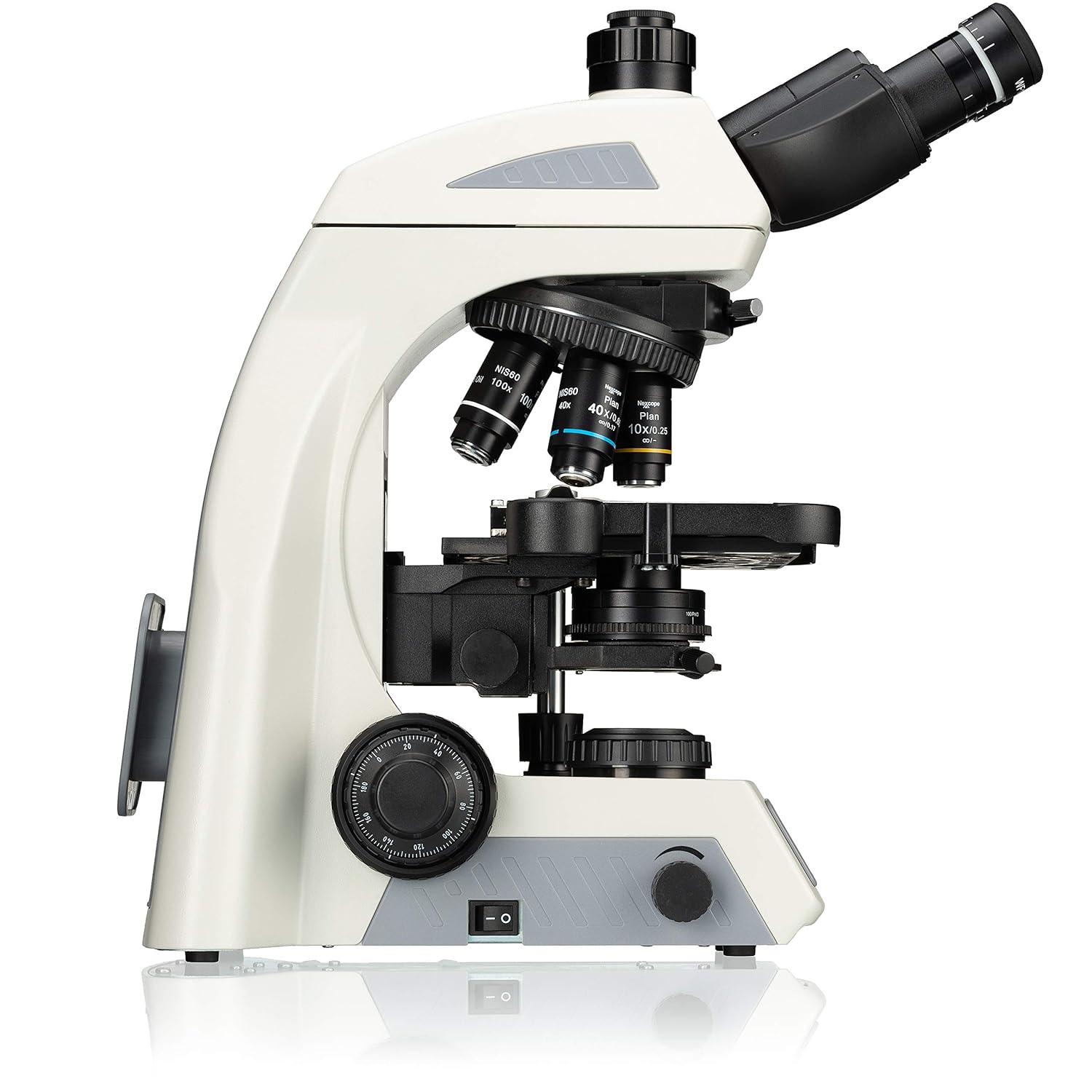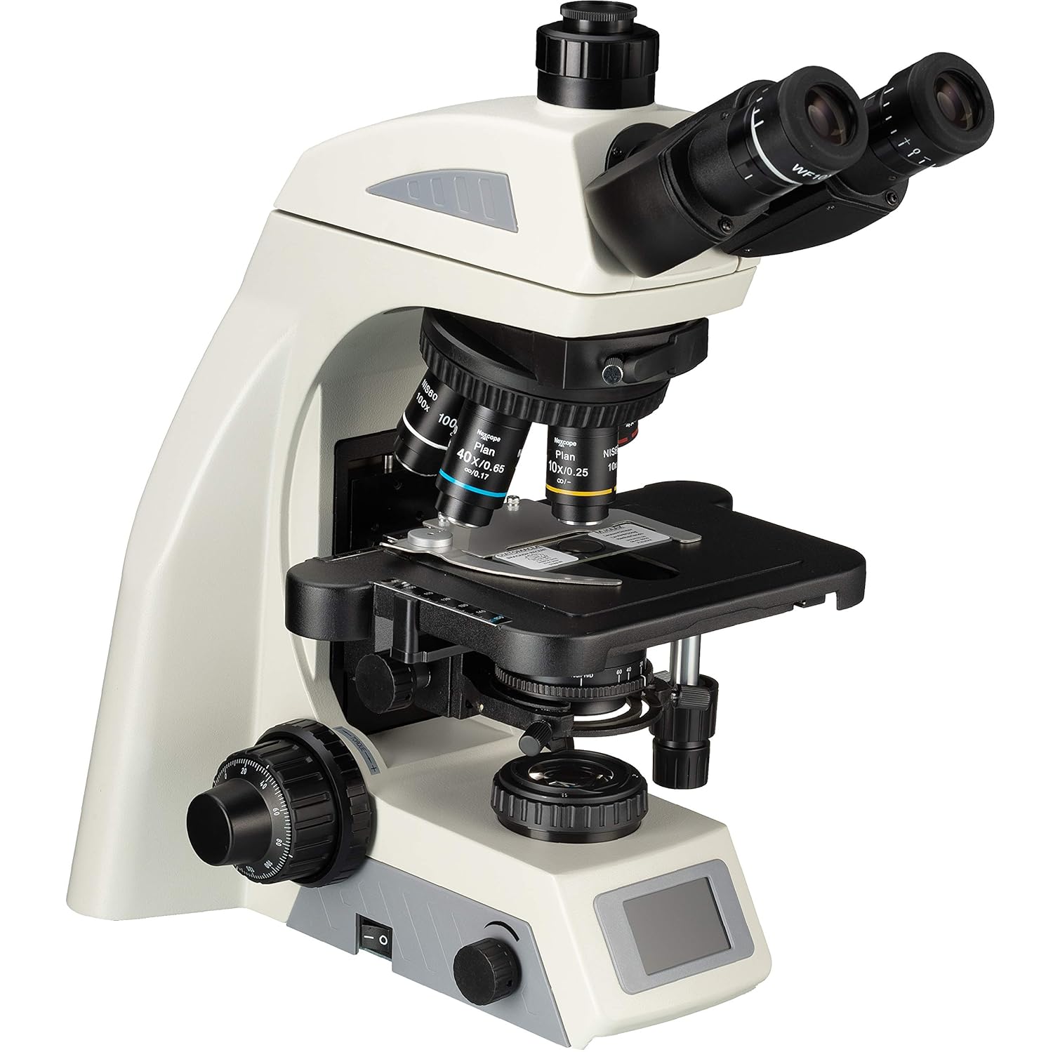 Professionelles Labormikroskop mit kodiertem 5-fach Revolver und automatischer Helligkeitsregelung Plan-korrigierte Unendlich-Objektive (4x, 10x, 40x, 100x). 5-fach Objektivrevolver, zum Beispiel für optionale Wasserimmersion. Okulare mit sehr großem Sehfeld (22 mm) Hochwertige, präzise Mechanik für Kreuztisch und Fokustrieb. Köhlersche Beleuchtung, Filtereinschub (zB für Polarisation) Abmessungen: 22x38x46cm / Gewicht: 8,9 KG Lieferumfang: Mikroskopstativ mit vier planachromatischen Objektiven (4x, 10x, 40x, 100x), ein Paar 10x Okulare (Sehfeld: 22 mm, Steckdurchmesser: 30 mm), Staubschutzhülle, Netzkabel | قیمت یورویی : 1625.01€