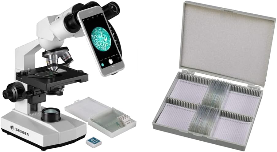 Bresser biologisches Durchlicht-Mikroskop, Erudit Basic Bino 40x-400x, Grob- und Feinfokussierung & Dauerpräparate für Mikroskop, vorgefertigte und konservierte Präparate zu verschiedenen Themen Binokular Bundle mit Dauerpräparate | قیمت یورویی 246.18€