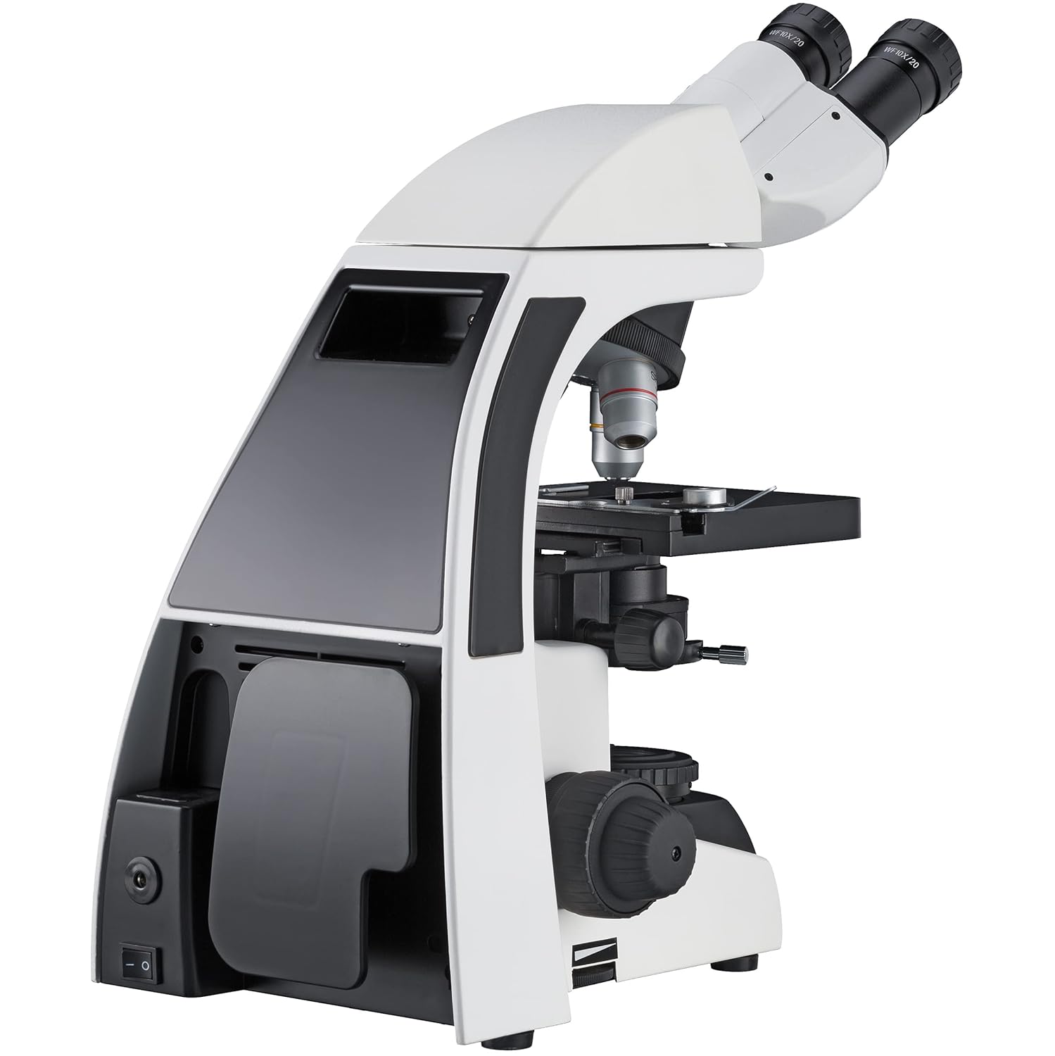 Ein hochwertiges Mikroskop mit binokularem Einblick, Kreuztisch und Semiplan-Objektiven für Fortgeschrittene. Die LED-Durchlichtbeleuchtung ist dimmbar und eignet sich zur Dunkelfeld-Mikroskopie. Die Optik bietet 40-1000-fache Vergrößerungen und der einstellbare Kondensor sorgt für eine optimale Objektausleuchtung. Auf dem koaxialen Kreuztisch mit Einhandbedienung lassen sich Beobachtungsobjekte mittels Grob- und Feintreib exakt ausrichten. Der einstellbare Augenabstand und ein Dioptrienausgleich gehören zum Standard. Weitere Merkmale sind Abbe Kondensor mit Filterhalter und Irisblende und ein umfangreiches Zubehör. Abmessungen: 390x205x395 mm / Gewicht: 6 kg; Der Betrieb erfolgt via Netzstecker oder USB-Kabel (im Lieferumfang enthalten) Lieferumfang: Mikroskopstativ mit integrierter LED-Beleuchtung; Semiplan-Objektive (4x, 10x, 40x, 100xÖl); zwei Stück WF 10x Okulare; Immersionsöl; Staubschutzhülle; Netzteil (EU, GB) mit USB-Stromkabel; Bedienungsanleitung | قیمت یورویی : 649.99€