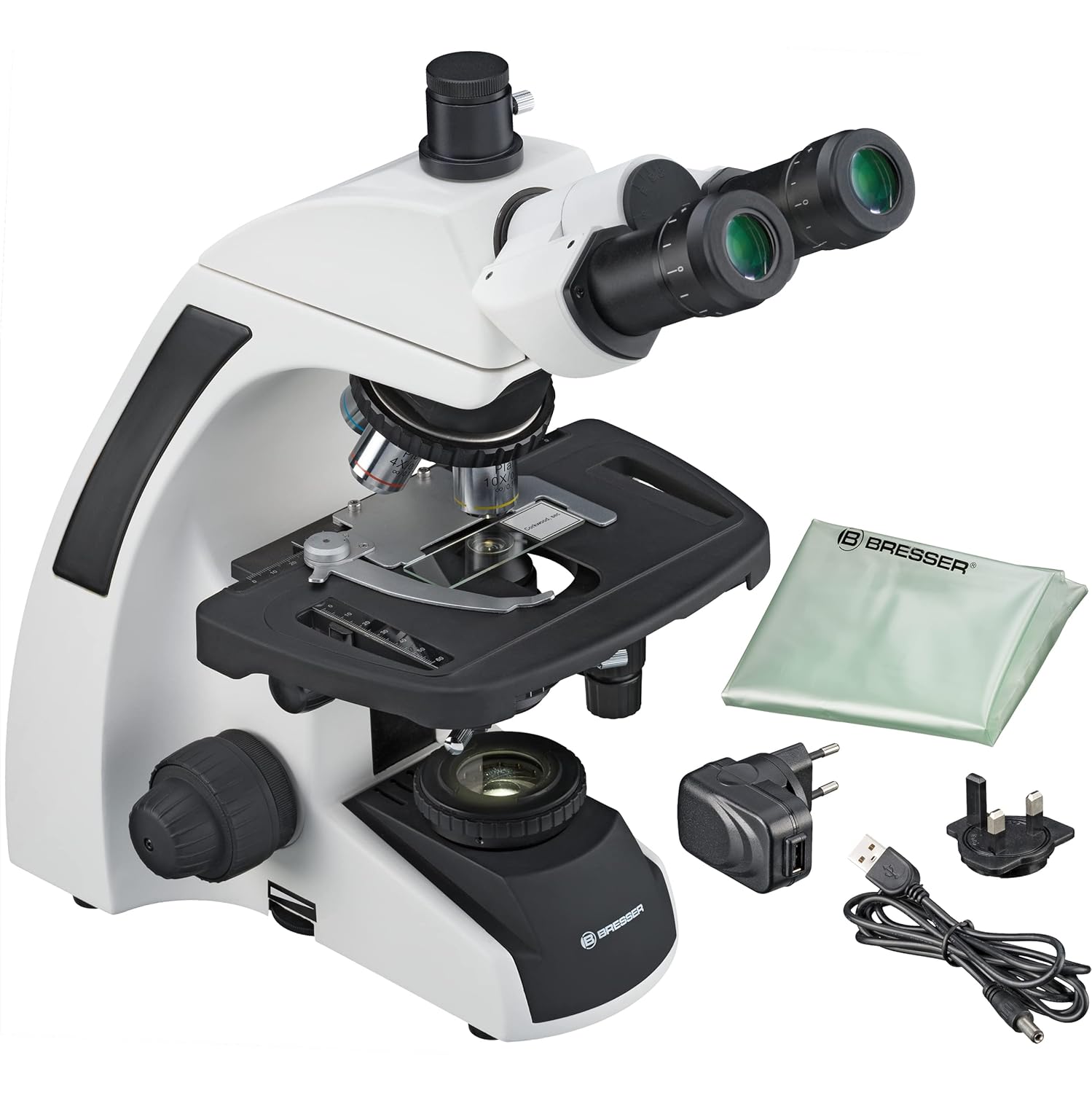 Bresser professionelles trinokulares Durchlicht Mikroskop Science Infinity 40-1000x Vergrößerung, planachr. Objektive, Köhlersche Beleuchtung, sehr helle 3W LED, koaxialer Kreuztisch, c-Mount Adapter | قیمت یورویی 1109.09€
