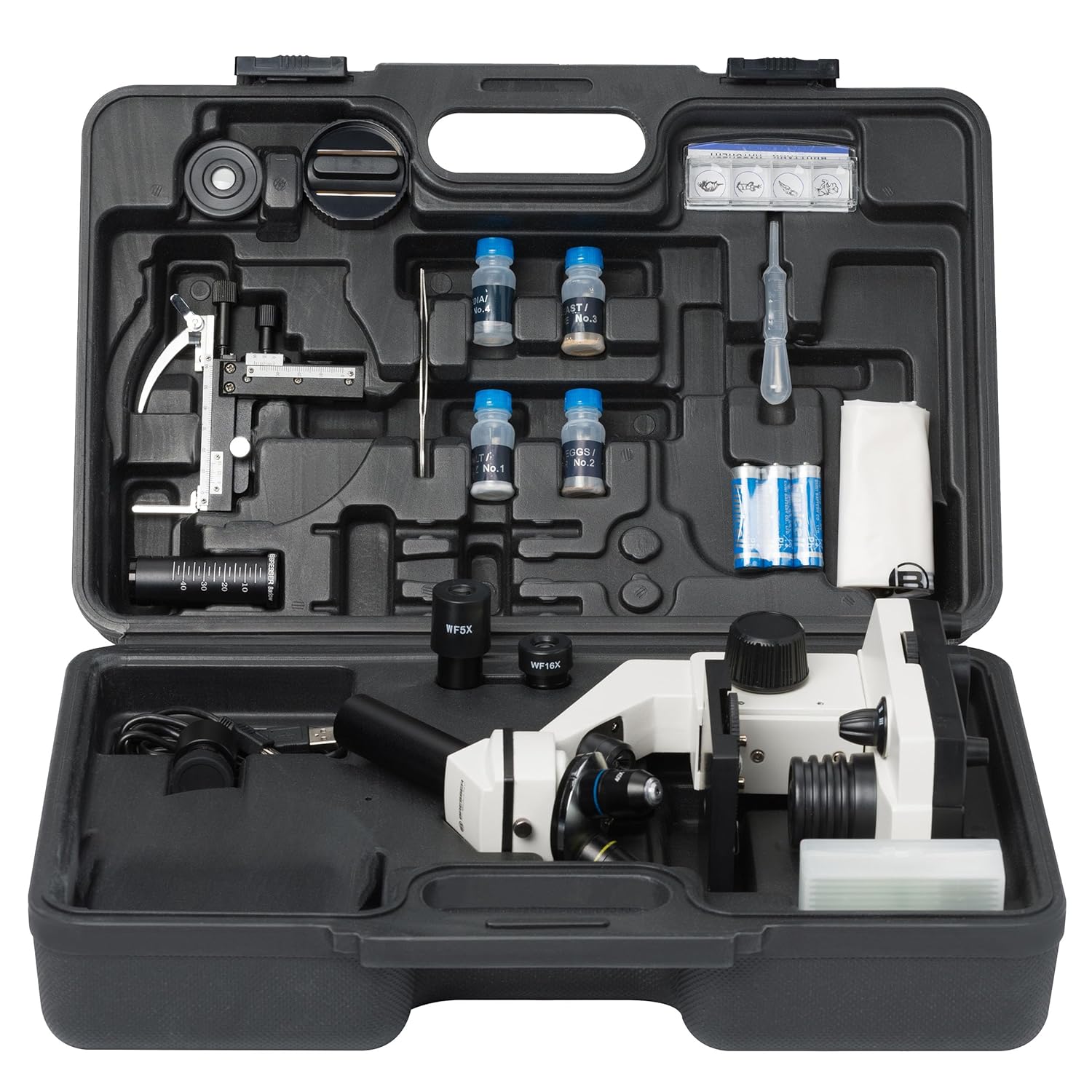 Hochwertiges Mikroskop mit Zoom-System für 20x-1280x Vergrößerung, ideal für Bildung und Hobby Integrierte HD USB-Kamera zur Aufnahme und Übertragung detaillierter Mikroskopbilder und -videos Flexibles Beleuchtungssystem mit LED für Durchlicht und Auflicht, inklusive Farbfilter und Blenden Umfangreiches Zubehörset inklusive Präparate, Objektträger, mechanischem Kreuztisch und Mikroskopierbesteck Barlow-Zoomsystem für stufenlose und vielseitige Vergrößerungseinstellung | قیمت یورویی : 139.9€