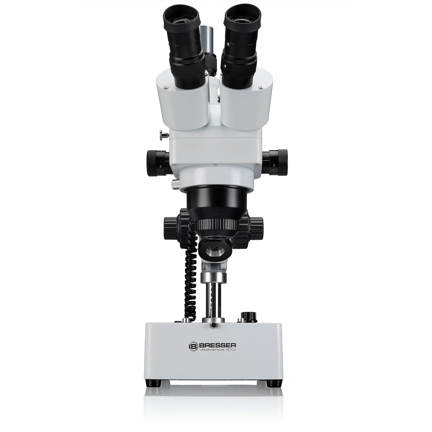 میکروسکوپ نوری عبوری و تابشی استریو سه بعدی Bresser Advance ICD 10x-160x با قابلیت اتصال دوربین سه چشمی، لنز زوم استریو و روشنایی LED، شامل سر میکروسکوپ با قابلیت چرخش ۳۶۰ درجه