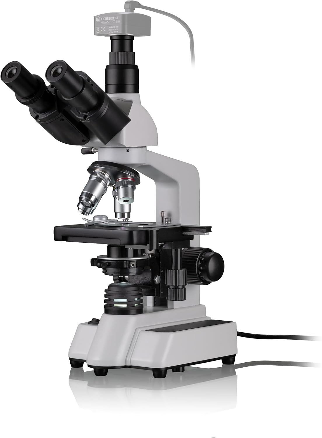 میکروسکوپ نوری عبوری Bresser مدل Trino مخصوص محققین، بزرگنمایی برای کاربردهای دشوار، روشنایی LED و فوکوسر سه چشمی قابل چرخش، مدل Blanc، بزرگنمایی 40x-1000x مدل Trino Single