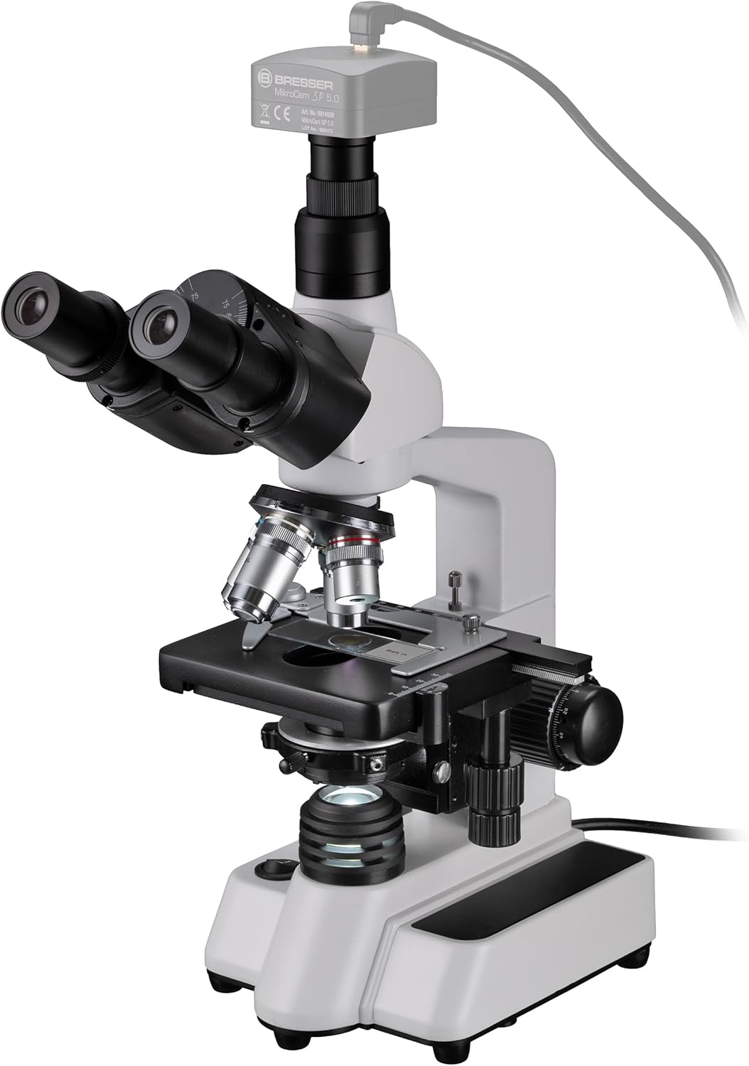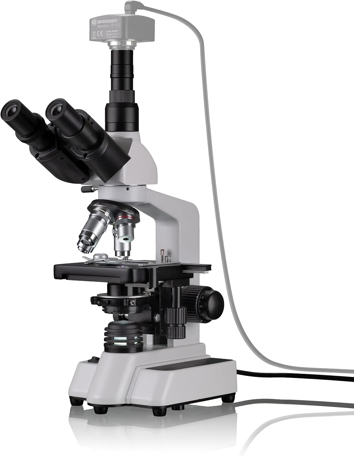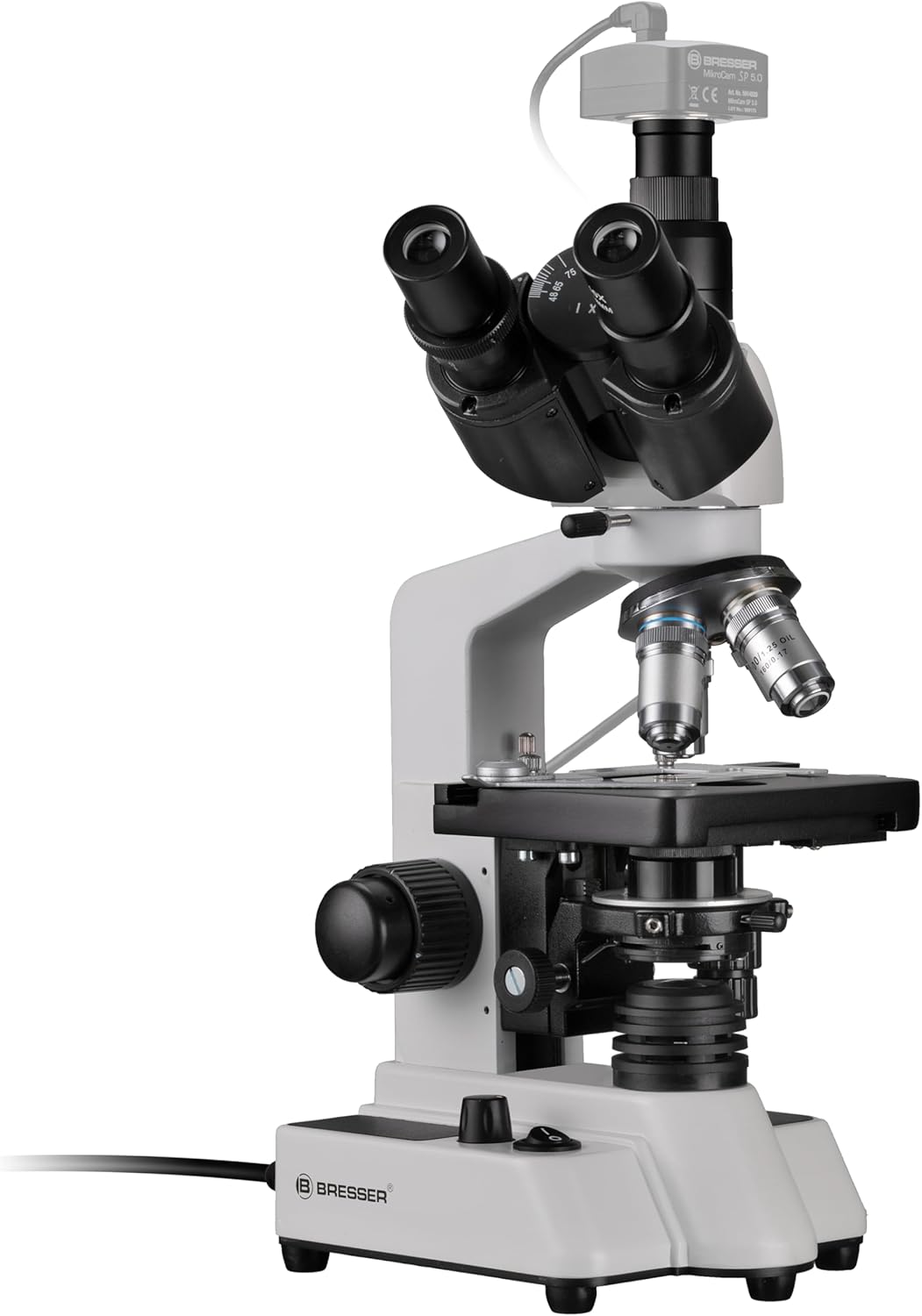 Bresser Durchlicht Mikroskop Researcher Trino Vergrößerung für gehobene Ansprüche, LED Beleuchtung und drehbarer trinokularer Auszug, Blanc, 40x-1000x Trino Single | قیمت یورویی 383.99€