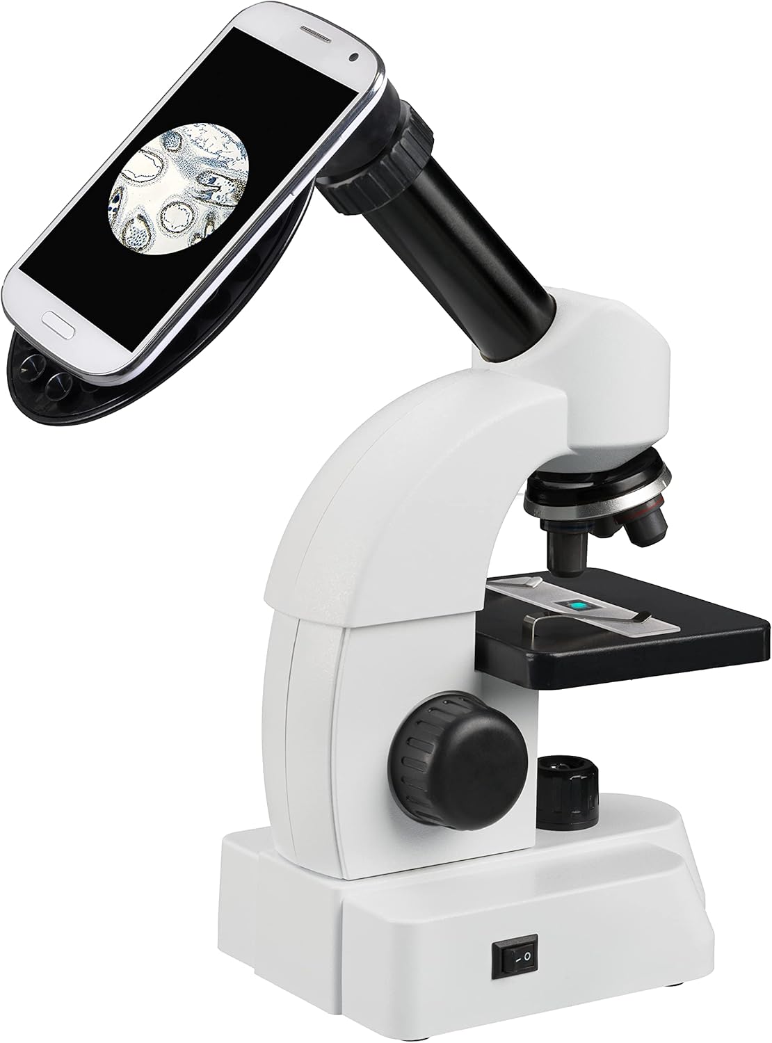 Mikroskop mit Durchlichtbeleuchtung für den direkten Einstieg in die Mikroskopwelt Inklusive Smartphone-Adapter zum Fotografieren mit dem eigenen Smartphone Vergrößerung ohne Zoom: bis zu 40x. Zusätzliche Zoom-Funktion ermöglicht eine Vergrößerung bis zu 640x. Fokussierrad zur Scharfeinstellung. Objekttisch mit Objektklemmen für den Objektträger samt Präparat. Eingebautes Blenden- und Farbfilterrad. Mikroskop Maße: 14x10x27 cm, Gewicht: 420 g/ Batteriebetrieben über 2x AA Batterien (nicht inklusive) Lieferumfang: Durchlichtmikroskop, Smartphone-Adapter, Zoom-Okular 10x-16x, Deckgläser, leere Objektträger, Dauerpräparate, Präparatebox für Objektträger, Sammelbehälter, Mikroskopierbesteck, Lupe, Messbecher, Brutanlage, Pinzette, MicroCut zum Erstellen von Präparaten, Anleitung Pipette | قیمت یورویی : 44.9€