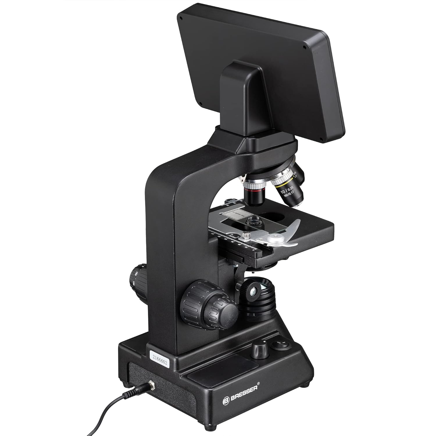 میکروسکوپ LCD Bresser مخصوص محققان با صفحه نمایش لمسی برای بزرگنمایی ۴۴ تا ۷۰۰ برابر، کندانسور، صفحه مکانیکی، فوکوس دقیق و حسگر ۱۶ مگاپیکسلی CMOS سونی برای عکسها و ویدیوهای Full HD