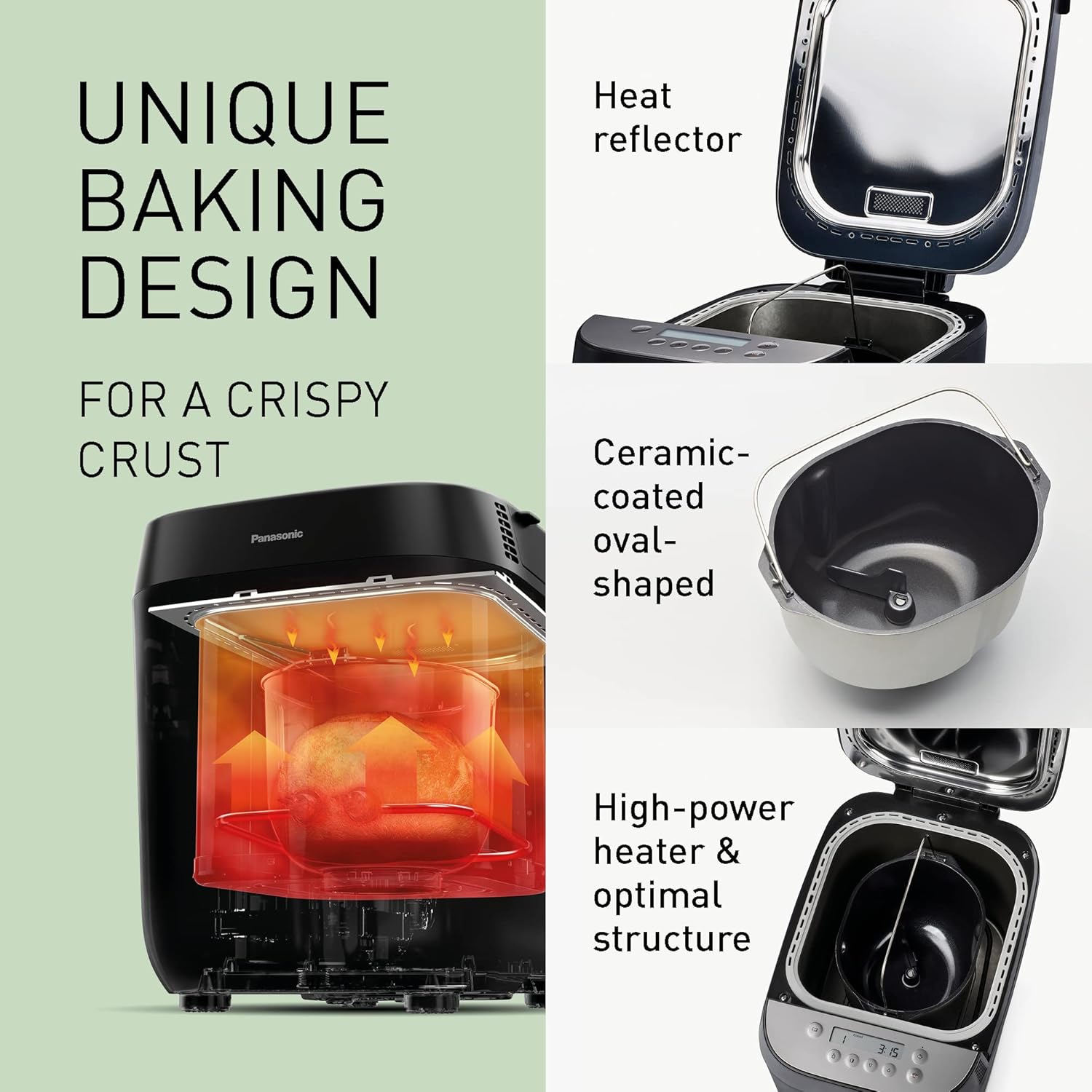 نان ساز پاناسونیک کروستینا SD-ZD2010 برای نان ترد (18 برنامه، دستگاه نان، بدون گلوتن، نان ترد، نان ترد غلات کامل)، مشکی