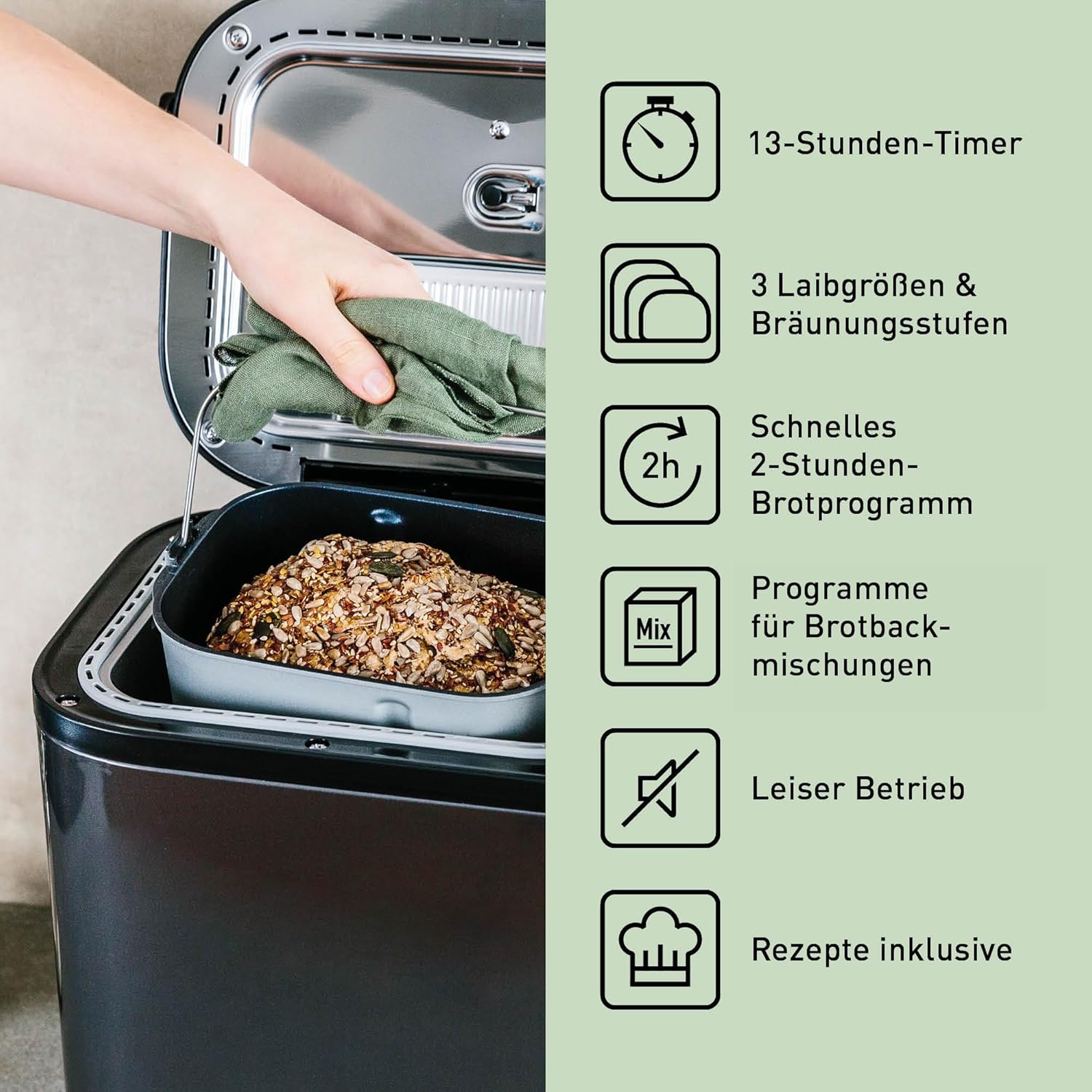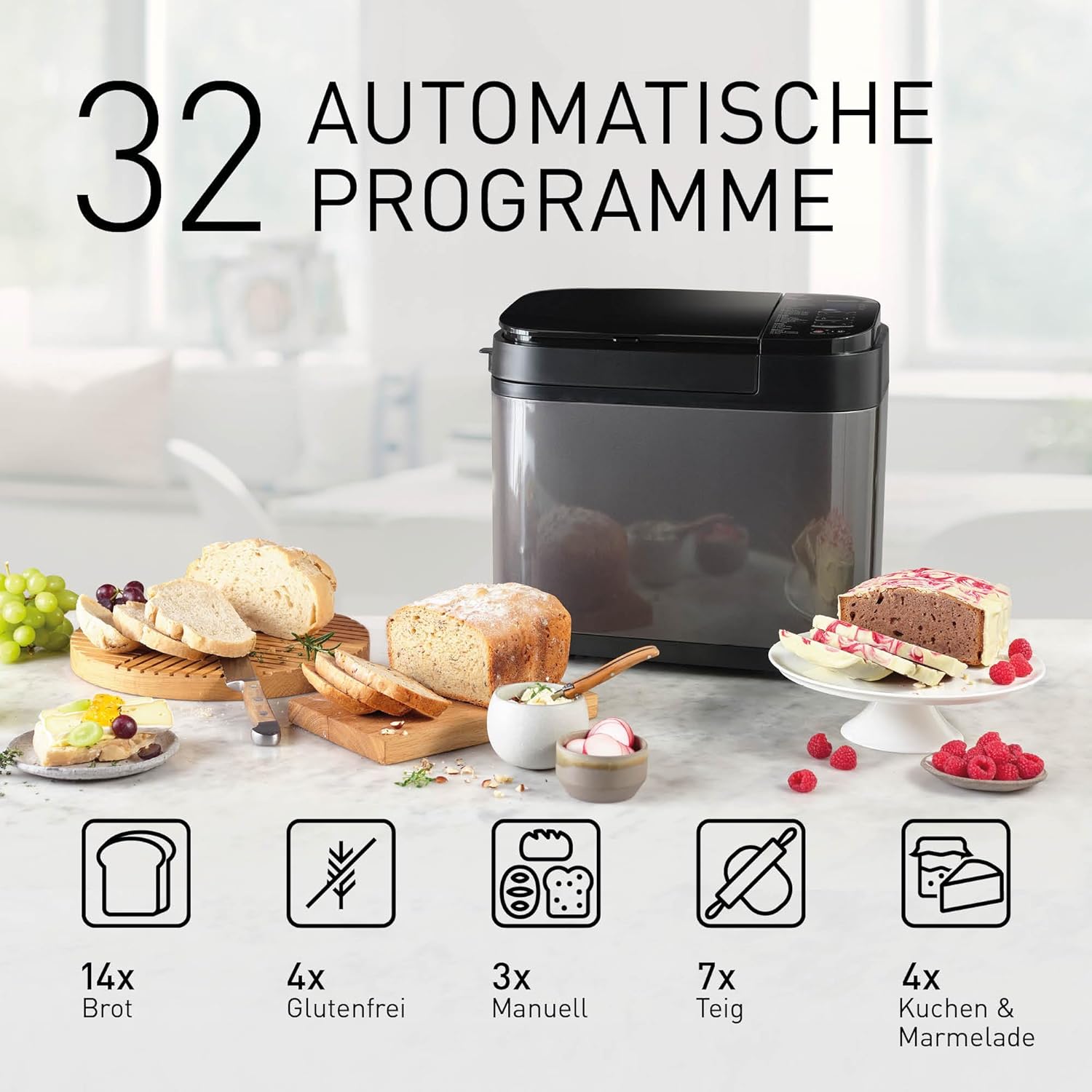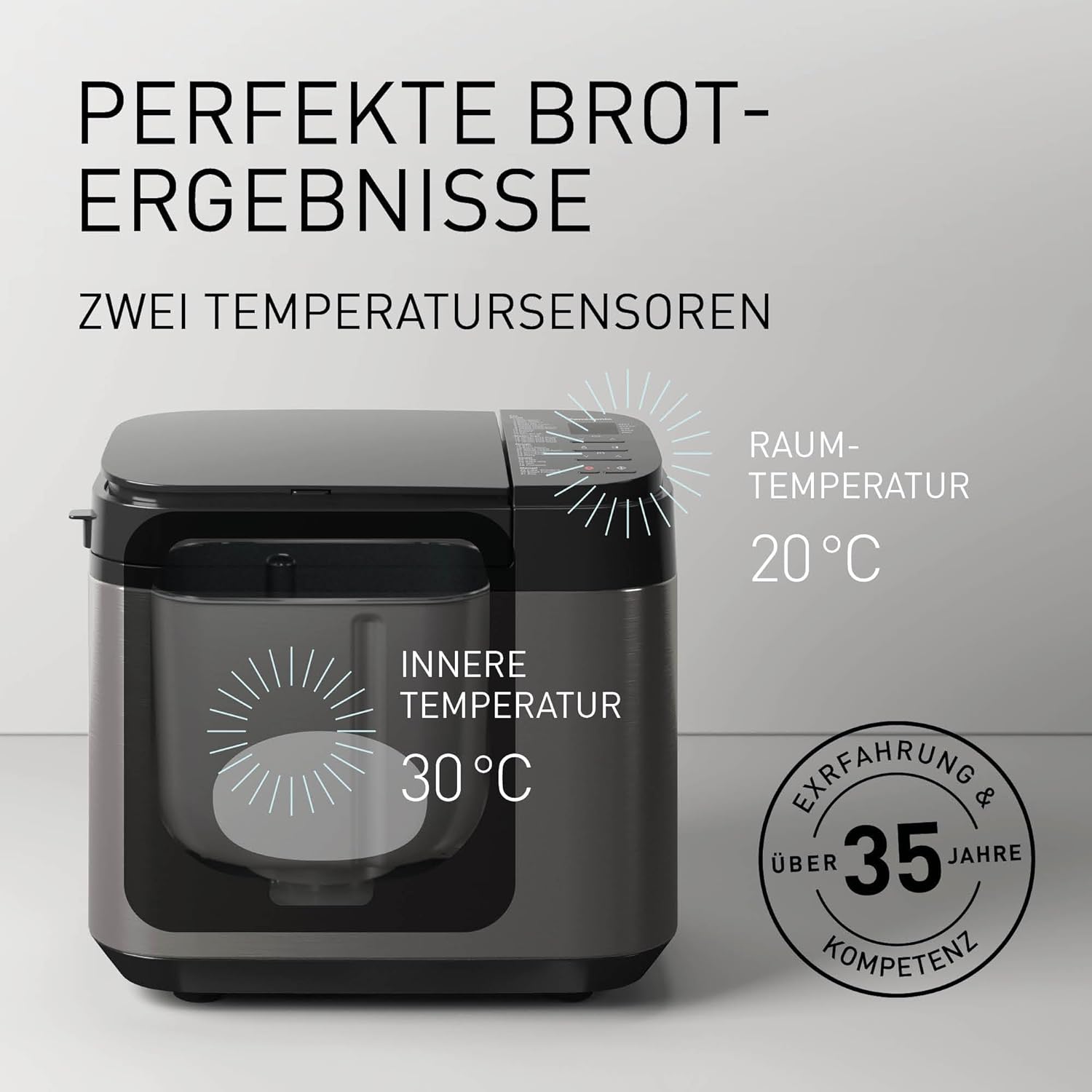 ZWEI TEMPERATURSENSOREN: Dieser Brotbackautomat verfügt über zwei eingebaute Sensoren zur Bestimmung der Innen- und Außentemperatur, um jedes Programm zu optimieren und Ihnen die bestmögliche Brotqualität zu bieten KNETEN OHNE HÄNDE: Dieser Brotbackautomat verfügt über einen innovativen Knethaken mit speziell platzierten Lamellen in der Backform, um Handkneten nachzuahmen und Ihnen jedes Mal das beste Brot mit der idealen Textur zu servieren VOLLAUTOMATISCH: Dieser Premium-Brotbackautomat verfügt sowohl über einen Hefe- als auch einen Rosinen-/Nussspender, der die Zutaten automatisch zum richtigen Zeitpunkt hinzufügt, sodass Sie mit weniger Arbeit konstant leckeres Brot erhalten AUTOMATISCHE UND MANUELLE EINSTELLUNGEN: Dieser Premium-Brotautomat hat bis zu 32 Programme, z. B. Vollkorn, Dinkel, Sauerteig, Brioche, Kuchen, Pizza, Marmelade. Einfach Wasser zur Mischung hinzufügen und voilà! Manuelle Einstellungen lassen Sie kreativ werden GLUTENFREIES GOURMETBROT: Dieser vielseitige Brotbackautomat verfügt über vier einfach zu bedienende automatische Programme für köstliches glutenfreies Brot, Kuchen, Pizzateig und Pasta ZEITVORWAHL: Wachen Sie jeden Morgen mit dem Duft von frisch gebackenem Brot mit dem Verzögerungstimer auf – fügen Sie einfach abends die Zutaten hinzu und stellen Sie den Timer für den Morgen ein (bis zu 13 Stunden im Voraus) | قیمت یورویی : 160.5€