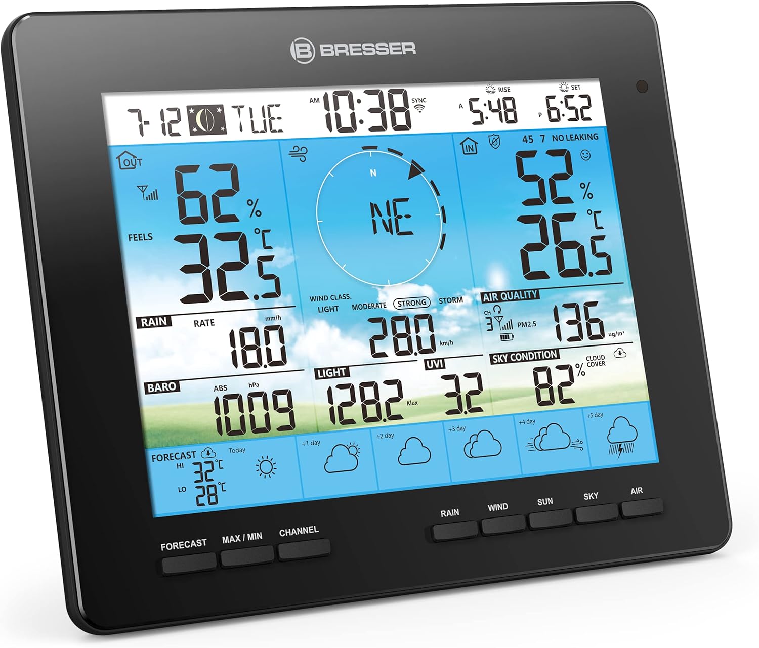 Mit dieser Zusatzbasisstation für Ihr Bresser 7003210 6-Tage Wetter-Center 4CAST erweitern Sie Ihren Blick auf Wetter, Zeit und Raumklima auf ein weiteres Zimmer oder einen zusätzlichen Haushalt Ersatz- bzw. zusätzliche Basisstation für die 7003210 6-Tage 4CAST Wetterstation, umfangreiche Wiedergabe von Wettermessdaten (Temperatur, Luftfeuchtigkeit, Luftdruck, Wind, UV-Index, Lichtintensität), Weck-/Alarmfunktion WLAN-Verbindung zur Veröffentlichung der Wettermessdaten, 6-Tages Wettervorhersage, lokale Sichtverhältnisse, Bewölkung, Frost-/Eiswarnung, grafischer Komfortindikator zur Luftqualität, Max.-/Min.-Werte-Speicherung (täglich/gesamt) Maße: 215 x 27 x 176,5 mm, erforderliche Batterien: CR2032 Back-up-Batterie (nicht im Lieferumfang enthalten) Lieferumfang: Basisstation (kein Außensensor enthalten!), Netzstecker | قیمت یورویی : 99€