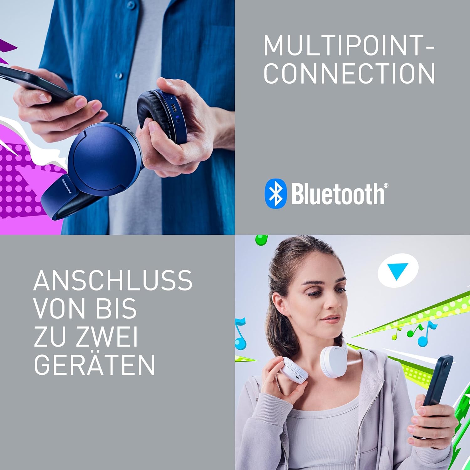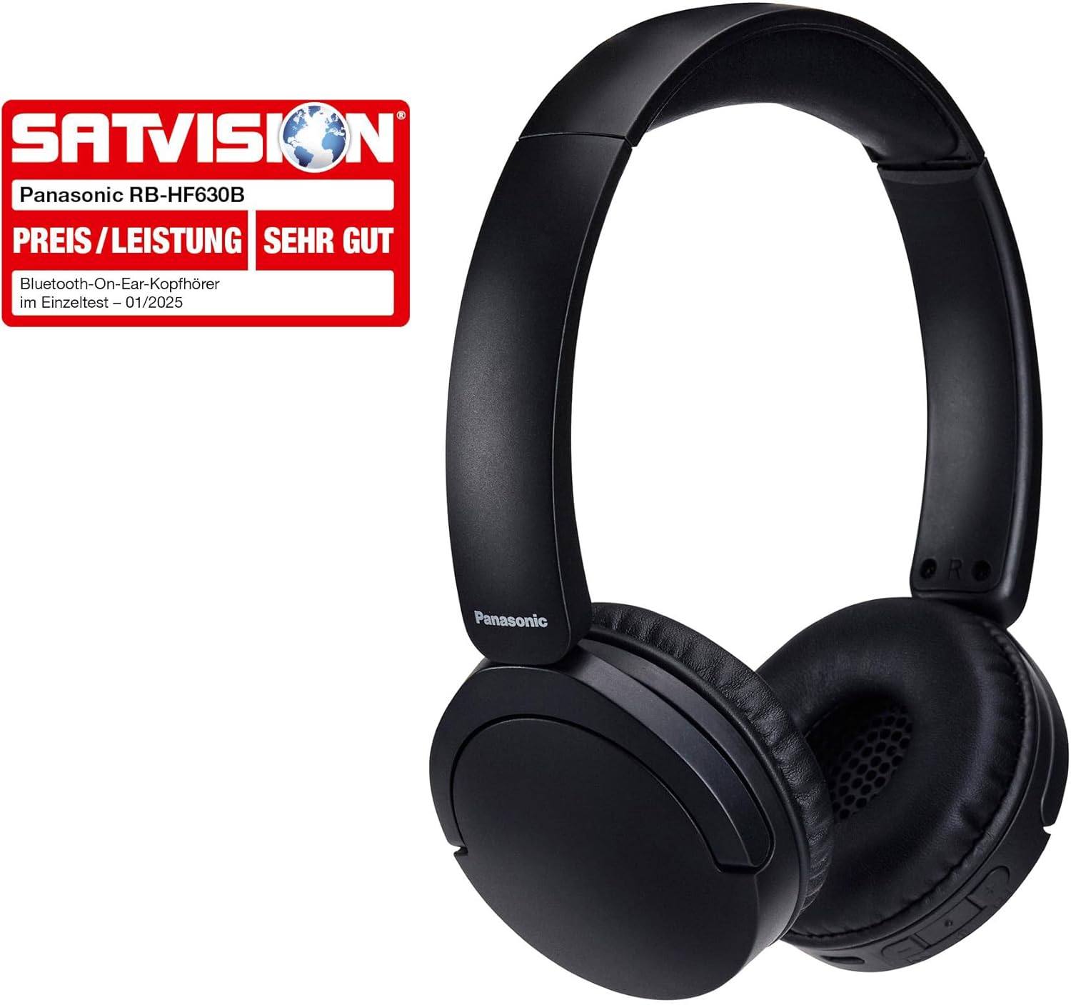 Panasonic HF630B, Kabelloser Street-Kopfhörer, On-Ear, eingebautes Mikrofon, Bluetooth 5.3, Multipoint, schwenkbares Design, bis zu 72 Stunden Wiedergabe, USB-C, Schwarz | قیمت یورویی 29.99€