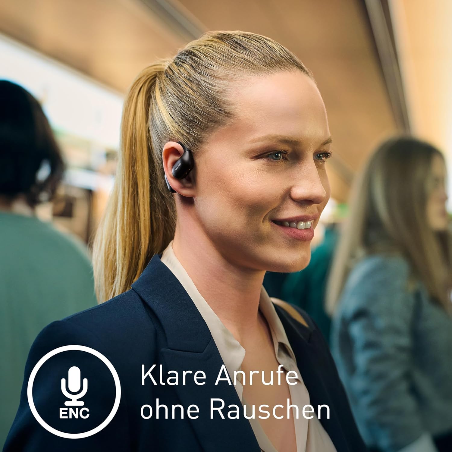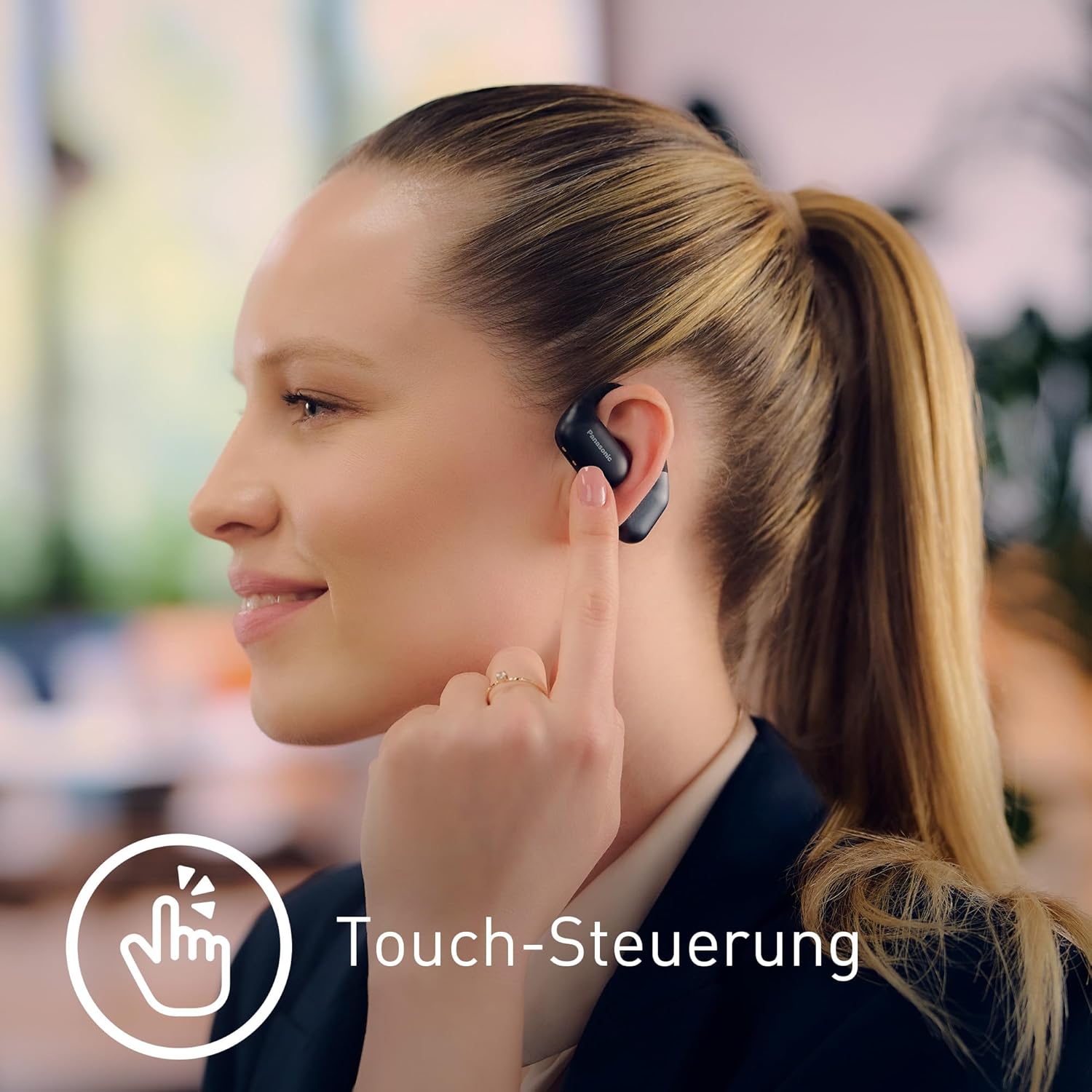 OPEN-EAR KOPFHÖRER: Immer bei der Sache dank des offenen Designs dieser Wireless Kopfhörer, mit dem Umgebungsgeräusche beim Musikhören wahrgenommen werden AUFSETZEN & VERGESSEN: Ganztägiger Tragekomfort und sicherer Halt auch bei langen Sessions dank der flexiblen Ohrbügel und des leichten Designs dieser Open-Ear Kopfhörer KLARE ANRUFE & SPRACHASSISTENT: Kristallklare Telefonate dank der beiden Mikrofone und ENC dieser Bluetooth Ohrhörer, während Siri und Google Assistant eine einfache Sprachsteuerung bieten STARKER SOUND: Satter, kraftvoller Sound mit den großen 17 x 12 mm großen Treibern dieser Ohrhörer zum Joggen, für Podcasts, Playlists und Anrufe BLUETOOTH 5.4 MULTIPOINT: Die Bluetooth-Unterstützung dieser Fitness-Ohrhörer stellt sicher, dass einfach zwischen zwei Geräten gewechselt werden kann, für stabile Verbindungen TOUCH-STEUERUNG & WASSERDICHT: Diese IPX4 Sport-Ohrhörer sind dank Touch-Sensoren überall einsetzbar, ob draußen oder im Fitnessstudio, und ermöglichen das Wechseln zwischen Anrufen und Musik KOMPAKTES LADECASE: Diese leichten Kopfhörer haben bis zu 7 Stunden Wiedergabezeit mit nur einer Ladung, während das Ladecase für zusätzliche 18 Stunden Musikgenuss sorgt | قیمت یورویی : 69.99€