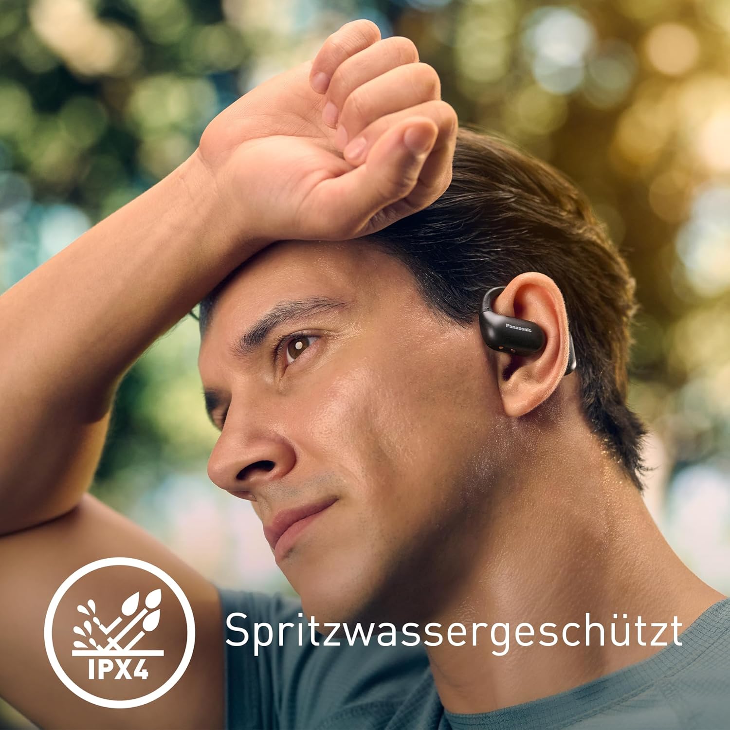 Panasonic RB-F10DE-K Open-Ear Wireless Kopfhörer, Bluetooth Kopfhörer mit ENC Mikrofon, 25 Std. Wiedergabe, Bluetooth 5.4, IPX4, Touch-Bedienung, Schwarz | قیمت یورویی 69.99€