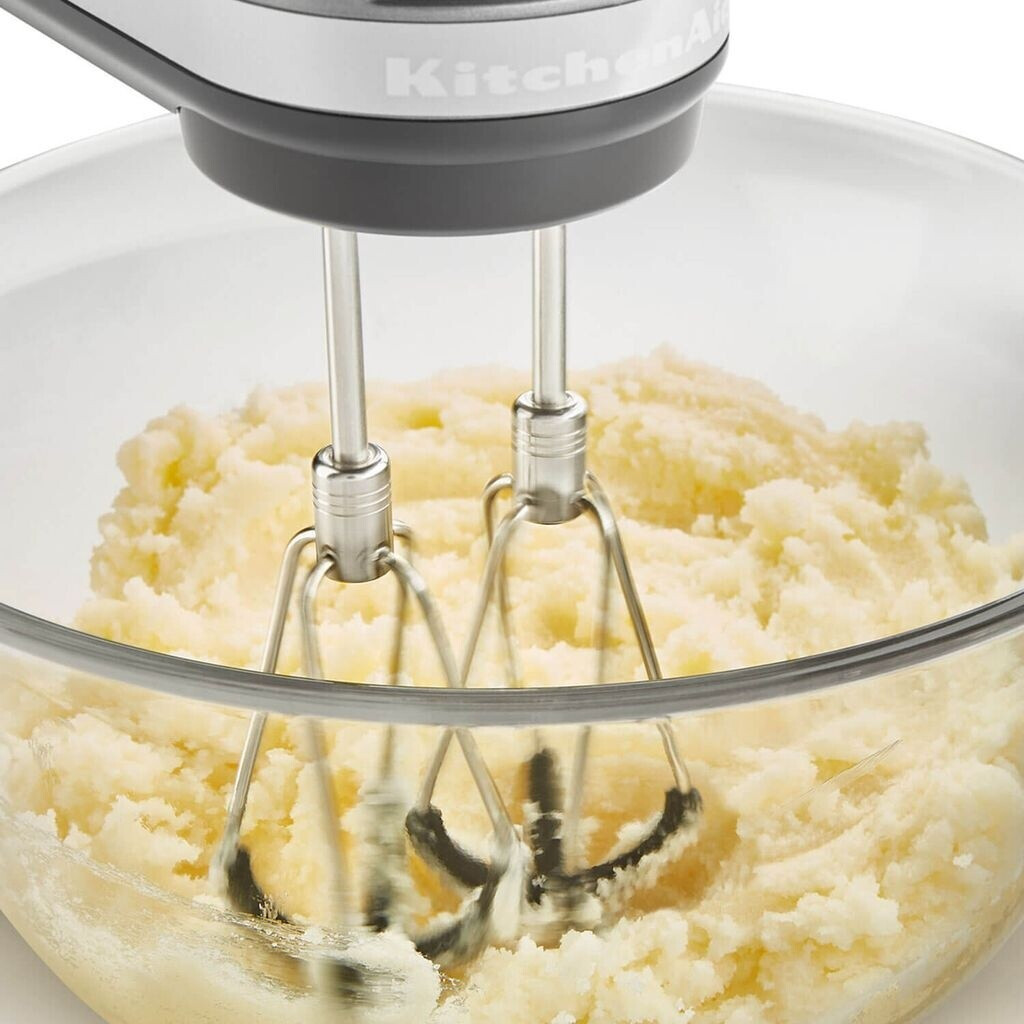 همزن دستی KitchenAid با سری Flexi Beaters جدیدش به شما این امکان را میدهد که با ۶ تنظیم سرعت مختلف، به طور بهینه هم بزنید، مخلوط کنید و هم بزنید. این همزن دستی دارای گیرهای است که به شما امکان میدهد سیم را به سمت چپ یا راست دستگاه ببندید تا از هر طرف بدون نگرانی مخلوط کنید. علاوه بر این، گیره ذخیرهسازی یکپارچه امکان ذخیرهسازی سریع و آسان را فراهم میکند و به شما این امکان را میدهد که لوازم جانبی خود را مستقیماً روی دستگاه قرار دهید و از دسترسی سریع آنها در دفعه بعد که به آنها نیاز دارید، اطمینان حاصل کنید.