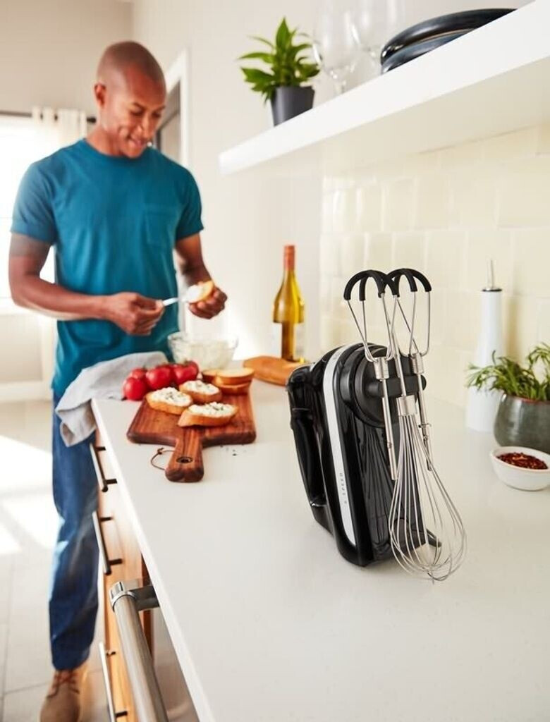 از کار بسیار کارآمد با همزن دستی 6 سرعته لذت ببرید. سبک و جمع و جور است و میتواند هم بزند، هم بزند، بکوبد یا ورز دهد.