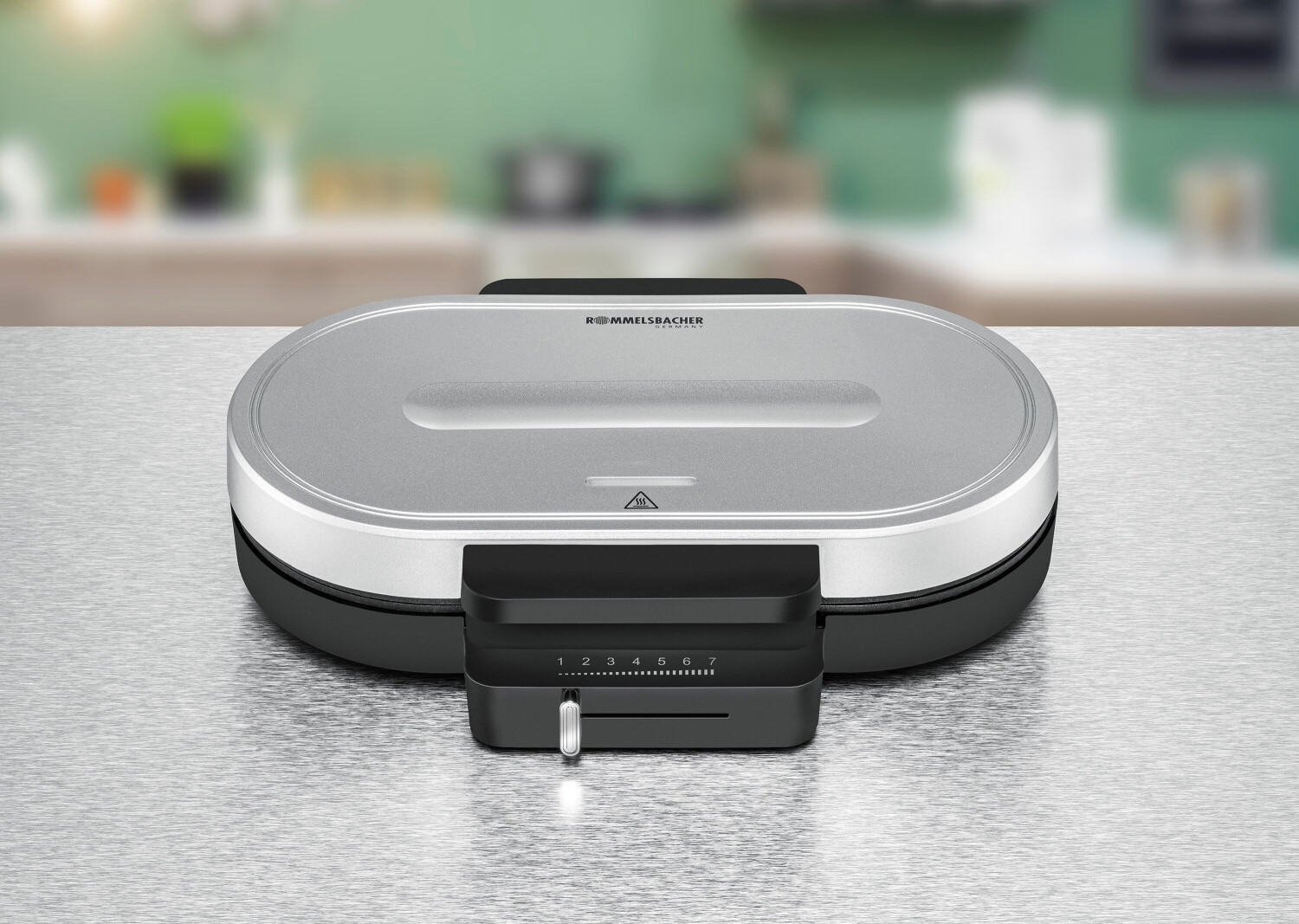 وافلساز برقی روملزباخر آلمان WA 1250 با توان 1250 وات امکان تهیه دو وافل همزمان در هر بار پخت را فراهم میکند.