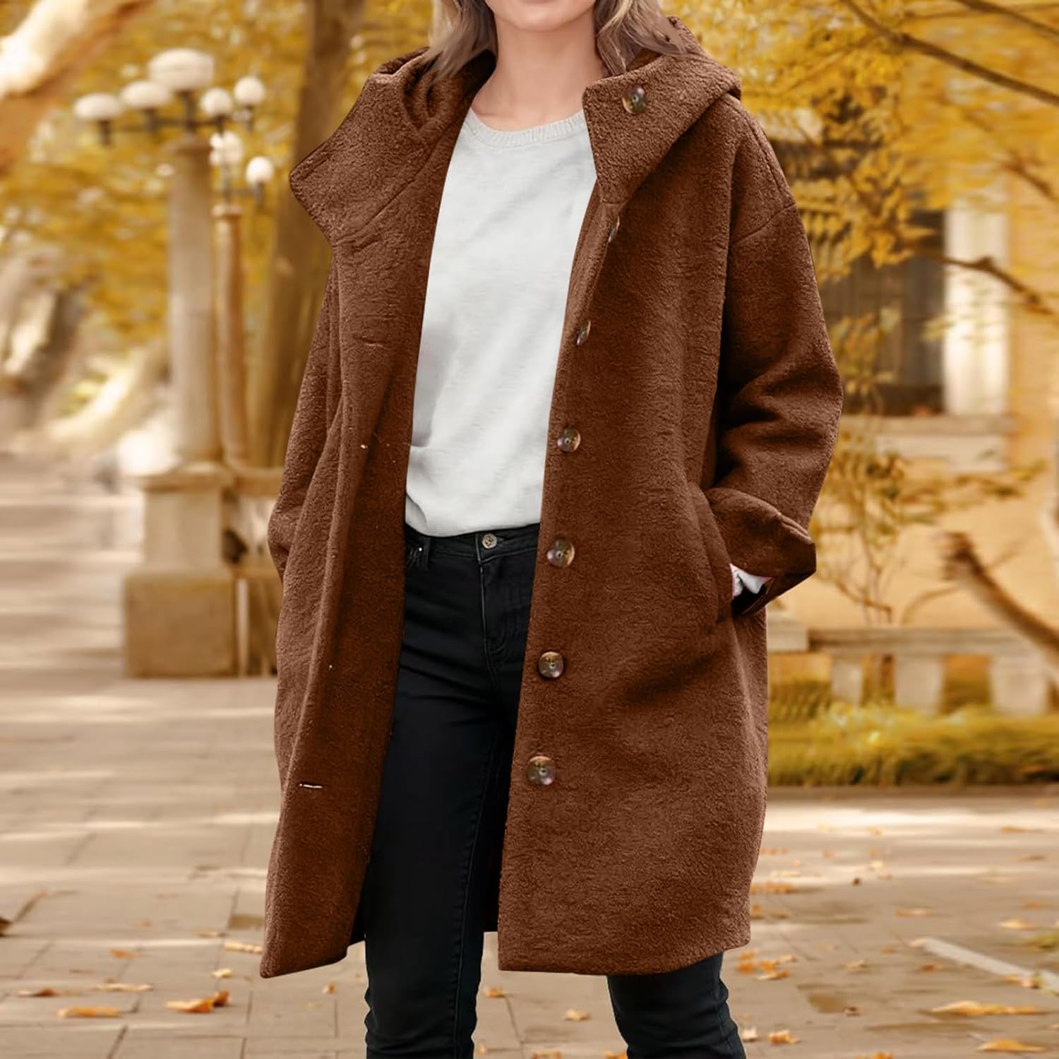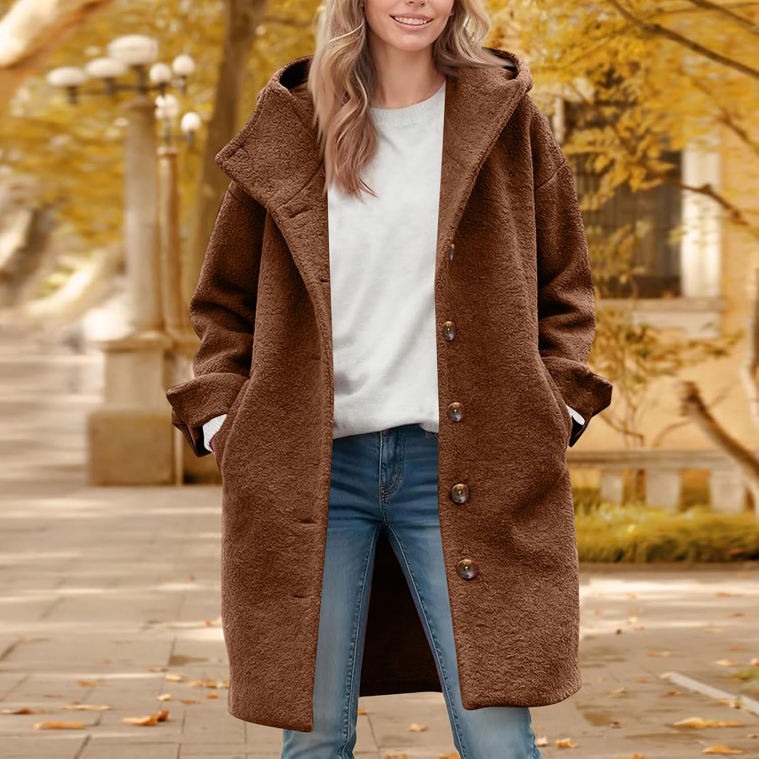 Generisch Wollmantel Damen Winter Winterjacke Damen Lang Warm Wolljacke Mit Kapuze Elegant Wintermantel Dicke Frauen Übergangsjacke Mit Knöpfen Mantel Oversize Trenchcoat Einfarbig Wolle Jacke XXL Braun A | قیمت یورویی 41.72€