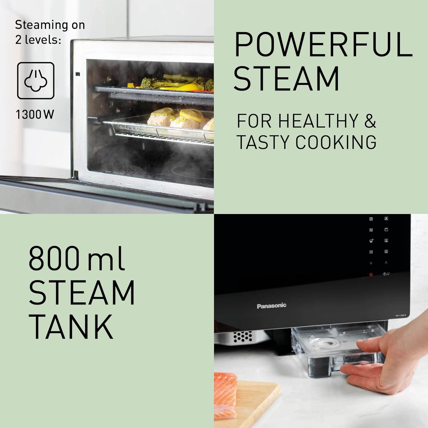 Panasonic NN-CS88LBEPG | 4-in-1-Kombi-Dampfofen, 31 l, Inverter, Drehheizung auf 30-230 °C, Flachgrill 1300 W, Mikrowelle 1000 W, Dampf 1300 W, feste Oberseite, Schwarz — Version FR | قیمت یورویی 587.96€