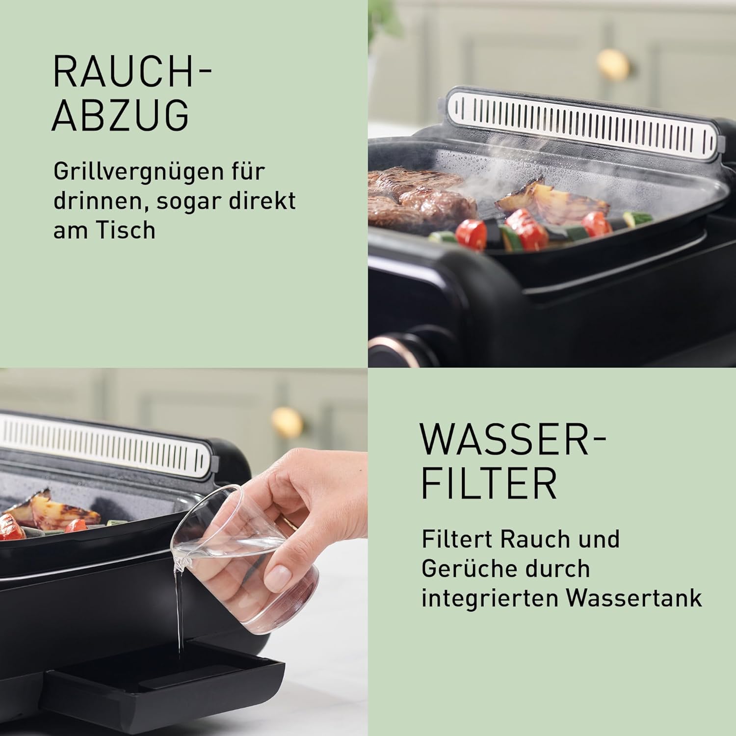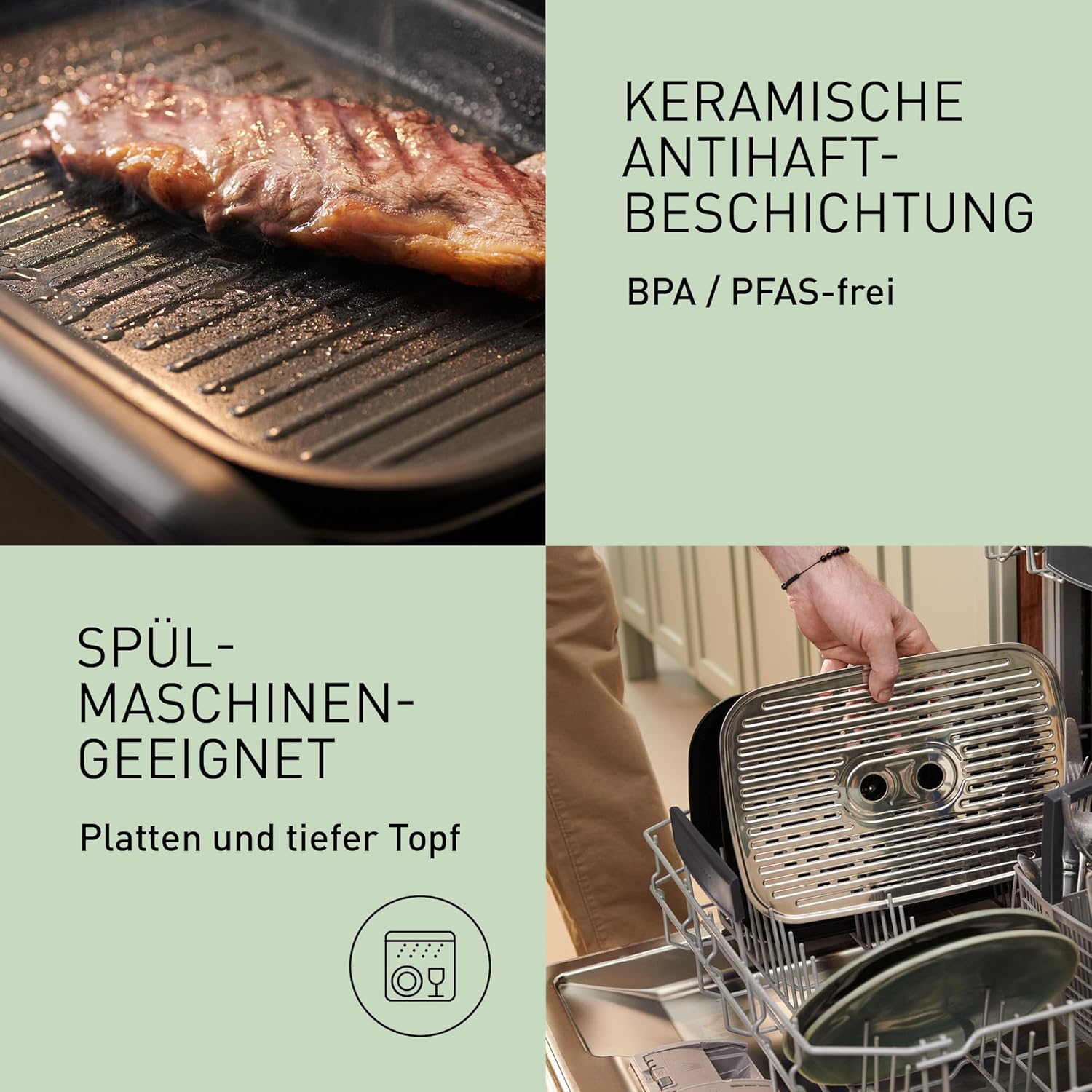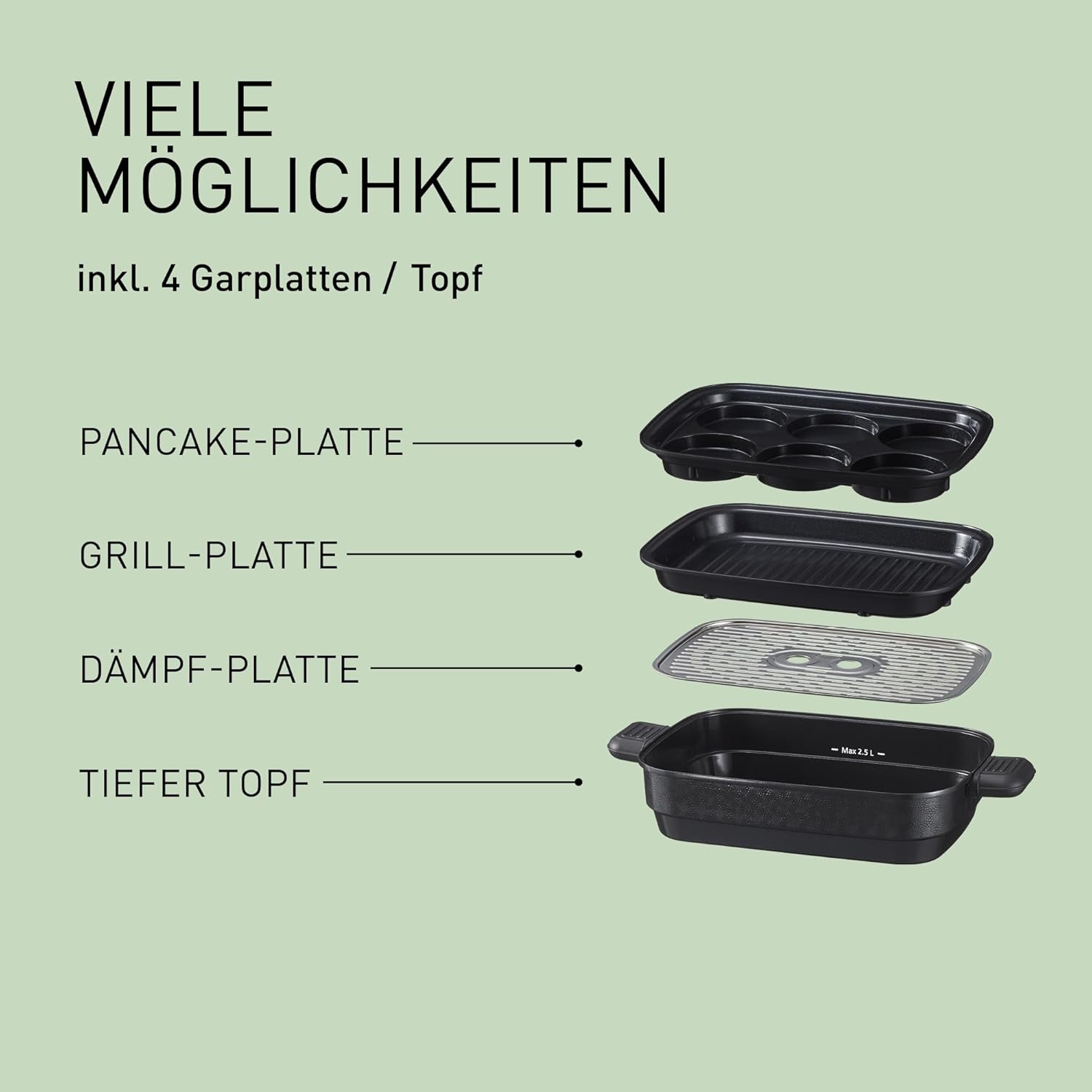 Panasonic NF-GM400KXE 4-in-1 Elektro-Multikocher, Elektro Tischgrill, Braten, Slow Cook, BBQ, Dämpfen, Sautieren, 1400W, 40–250°C, 9 Auto-Modi, 4 Antihaftplatten, Rauchabsaugung, Schwarz 4 Zubehörteile