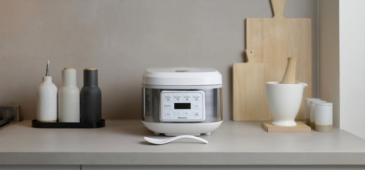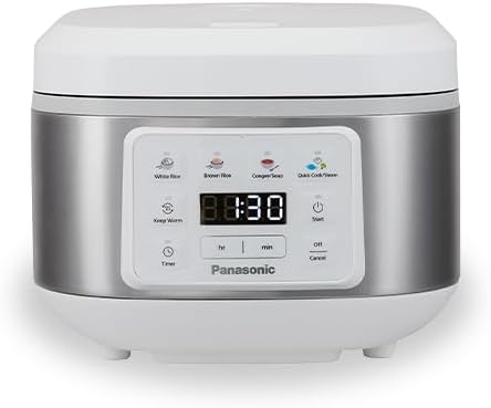 پلوپز و بخارپز اتوماتیک پاناسونیک SR-DA152WXE، 1.5 لیتر (8 فنجان)، 4 برنامه پخت، قابلمه نچسب بدون PFAS، عملکرد گرم نگه داشتن و تایمر، سفید