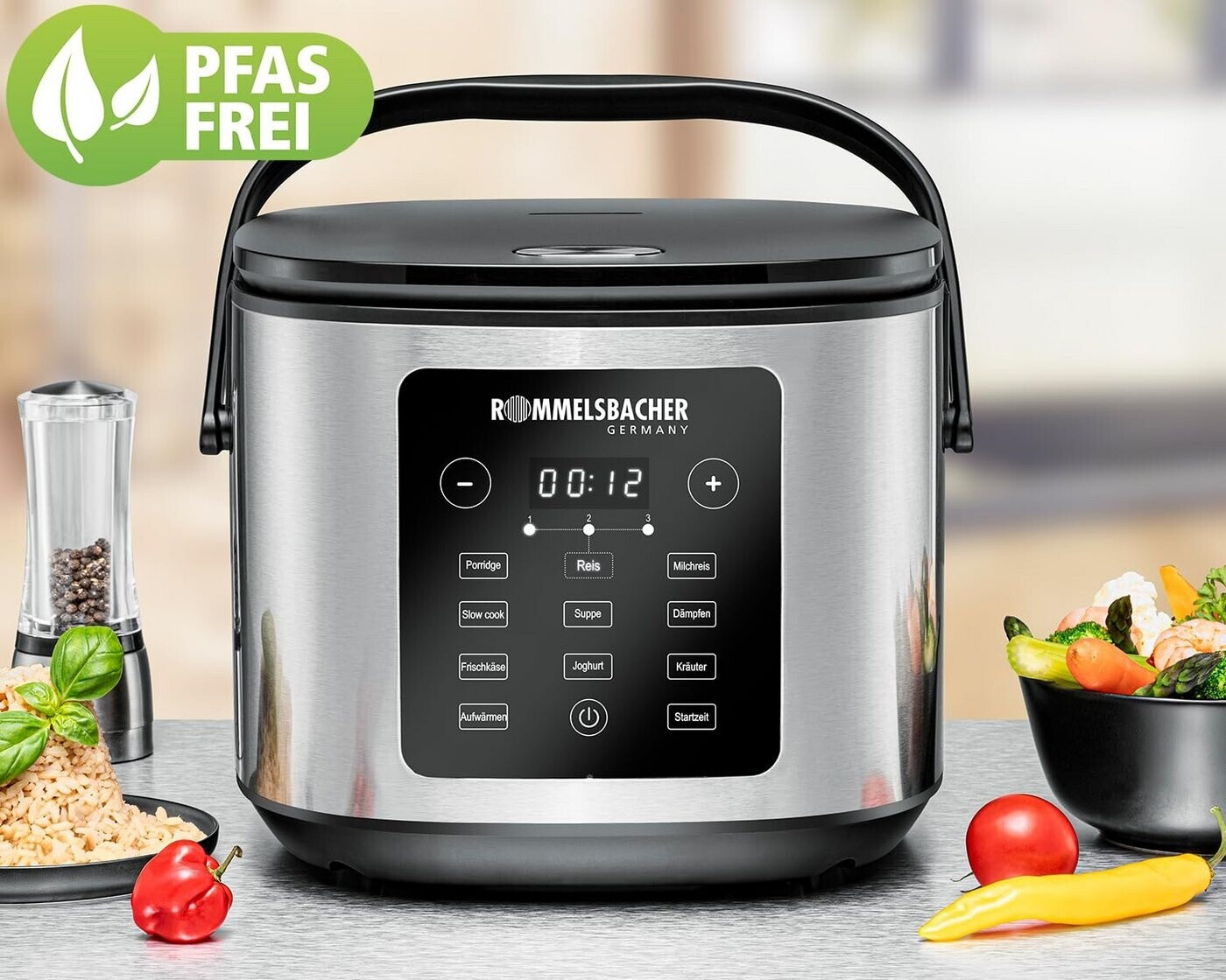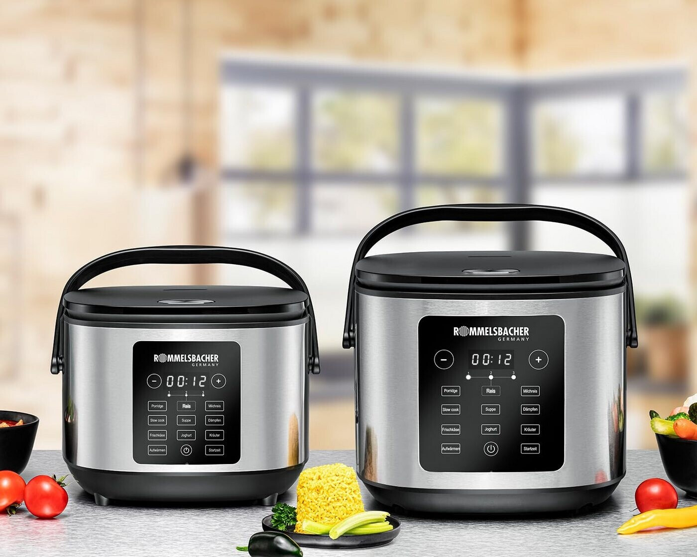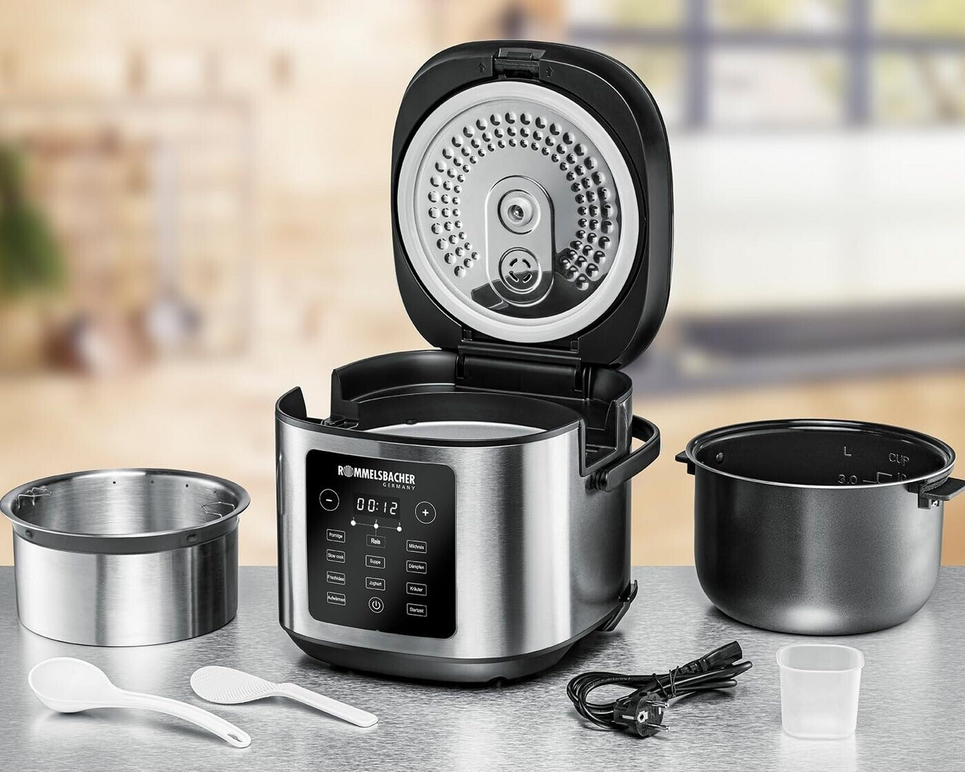 پلوپز روملزباخر آلمان مدل MRK 950 با طراحی دیجیتال و برنامههای متنوع، پخت برنج و غذاهای مختلف را آسان میکند.