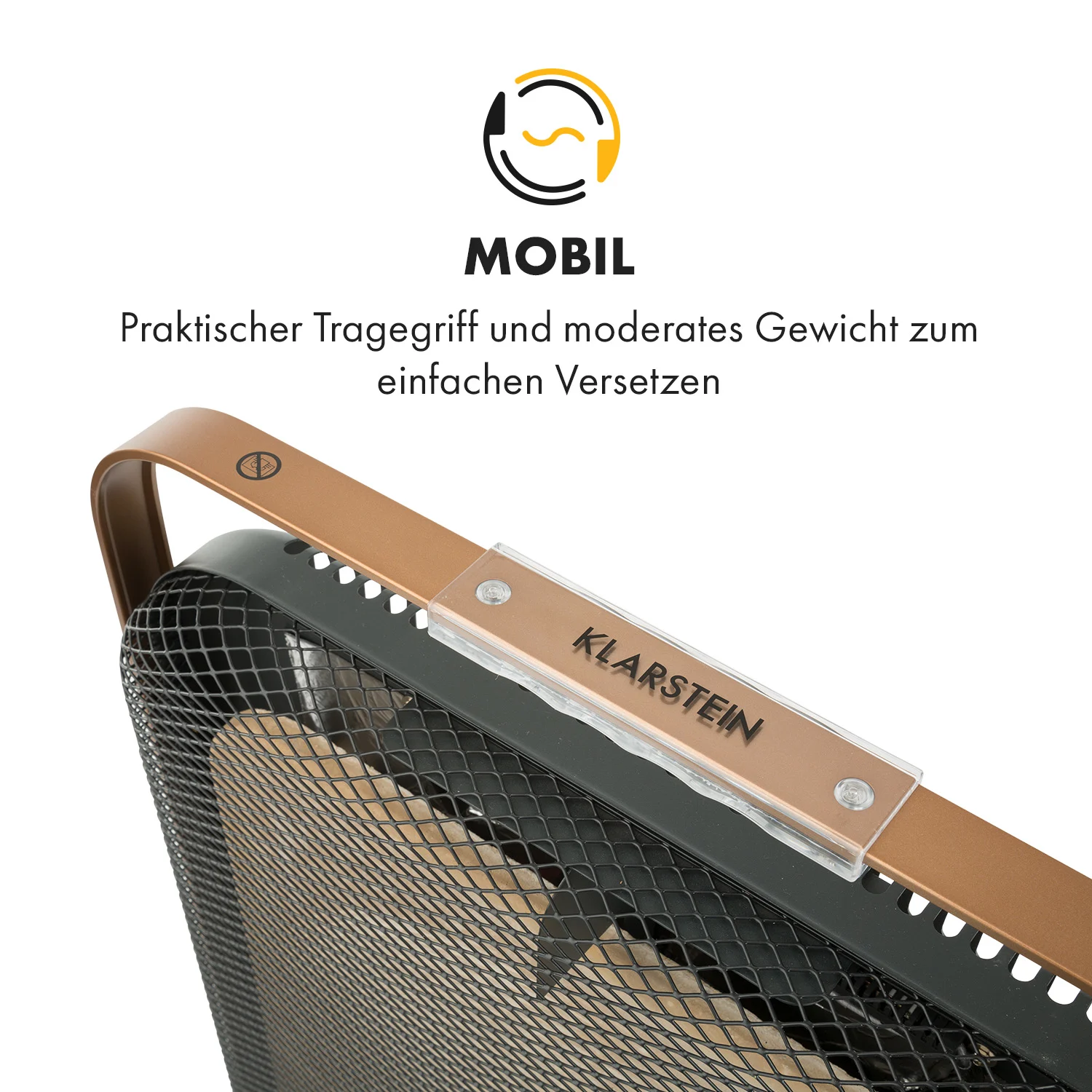 بخاری مادون قرمز Klarstein HeatPal Marble Blackline یک منبع گرمای کاربردی و قابل حمل و در عین حال یک دستگاه ذخیره گرمای بسیار کارآمد است. حتی پس از استفاده، اتاق شما بدون هیچ گونه مصرف برق دوباره گرم میشود: ایدهآل برای روزهای سرد زمستان! به لطف تابش گرمای مادون قرمز نوآورانه، شما همچنین احساس نوازش شدن توسط پرتوهای گرم آفتاب را خواهید داشت. به لطف فناوری پیشرفته IR Comfort Heat، این دستگاه هوا را گرم نمیکند، بلکه افراد و اشیاء موجود در اتاق را به صورت هدفمند و فوری گرم میکند. علاوه بر این، میتوانید این دستگاه کاربردی را در هر جایی نصب کنید و به لطف دسته حمل، آن را به راحتی جابجا کنید.