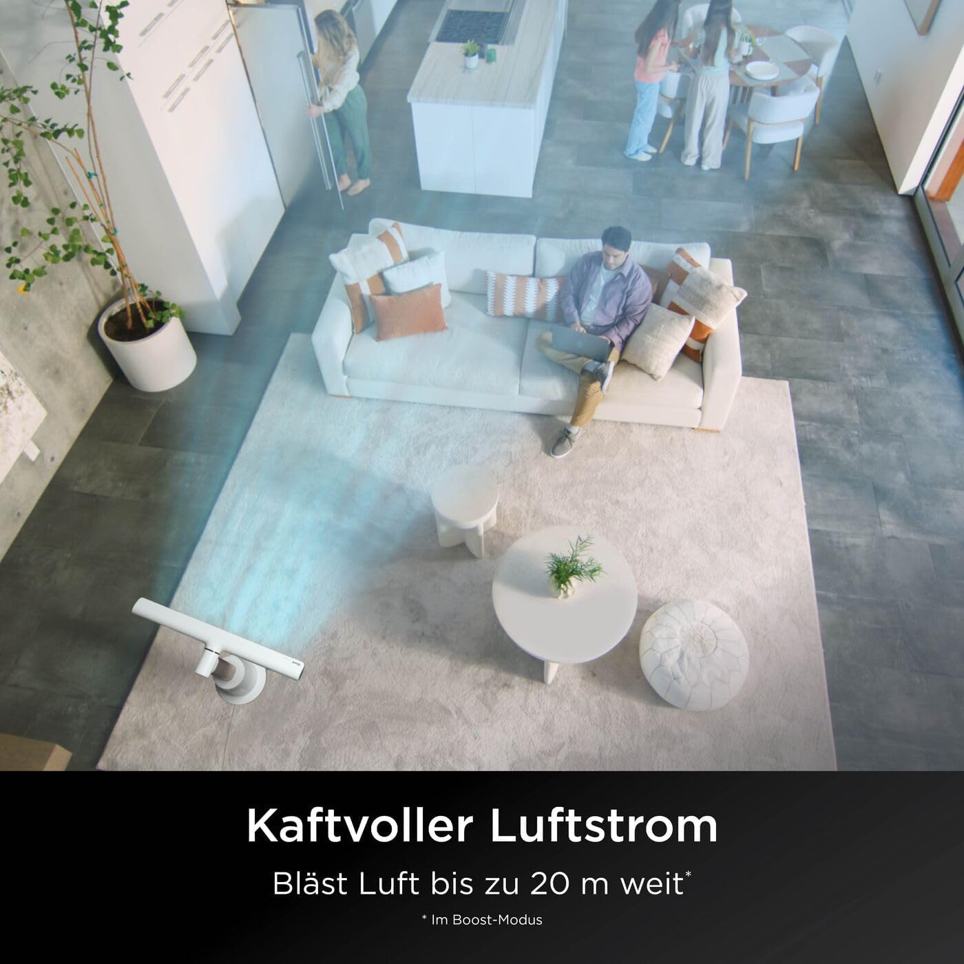 LEISTUNGSSTARKER, FLÜGELLOSER SÄULENVENTILATOR: Schnelle, multidirektional kühlende Luftzirkulation bis zu 20 Meter weit* (* im Boost-Modus). ANPASSBARE ABKÜHLUNG: Wechseln vom fokussierten vertikalen zum horizontalen Modus. Durch Drehen der Lüftungsschlitze wird in zwei Richtungen gleichzeitig gekühlt. Oszillation bis zu 180°. Anpassbare Höhe für jeden Raum. LEISER BETRIEB: 10 Geschwindigkeitsstufen stehen zur Verfügung, von leiser, sanfter Kühlung (nur 40 dB in Stufe 1) bis hin zu starker Kühlung. EINFACHE BEDIENUNG UND REINIGUNG: Timer-Modus (1, 2, 4, 8 oder 12 Stunden). Sondermodi: Sleep (Ruhe), Boost (Boost) und Breeze (Brise). Abwischbares, flügelloses Design. Ein leicht zu reinigender Staubschutz-Filter schützt den Lüfter im Inneren LIEFERUMFANG: Shark TurboBlade Ventilator TF200SEUWH, magnetische Fernbedienung, AAA-Batterien. Horizontaler Modus: Höhe: 80–96 cm, Breite: 80 cm. Vertikaler Modus: Höhe: 112–128 cm. Basisdurchmesser: ca. 75 cm Gewicht: 6,45 kg. Farbe: Weiß. 0 | قیمت یورویی : 279.99€