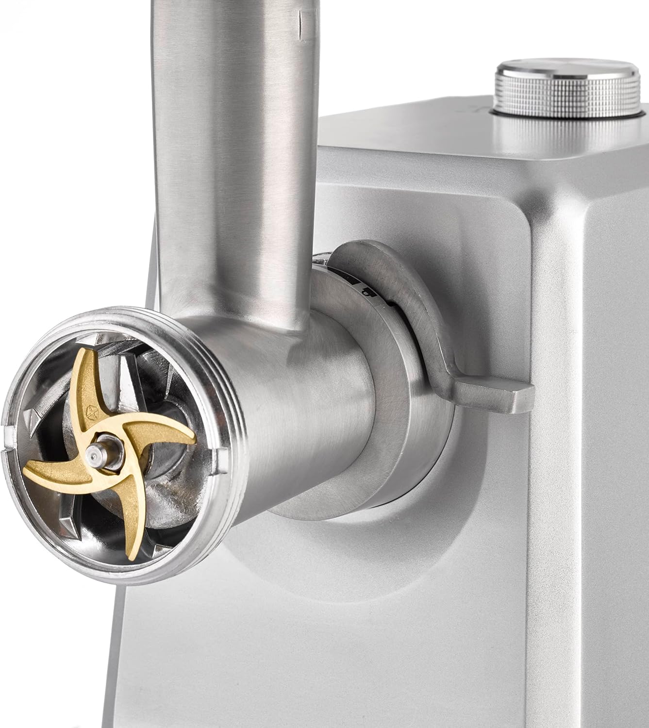 CASO FW 2500 Silber, Fleischwolf mit leistungsstarken 2500 Watt, Testurteil: Sehr Gut, Titan Klinge, Rücklauf-Funktion, Zubehör inkl. Burgerpresse 2500 Watt Silber | قیمت یورویی 154.7€