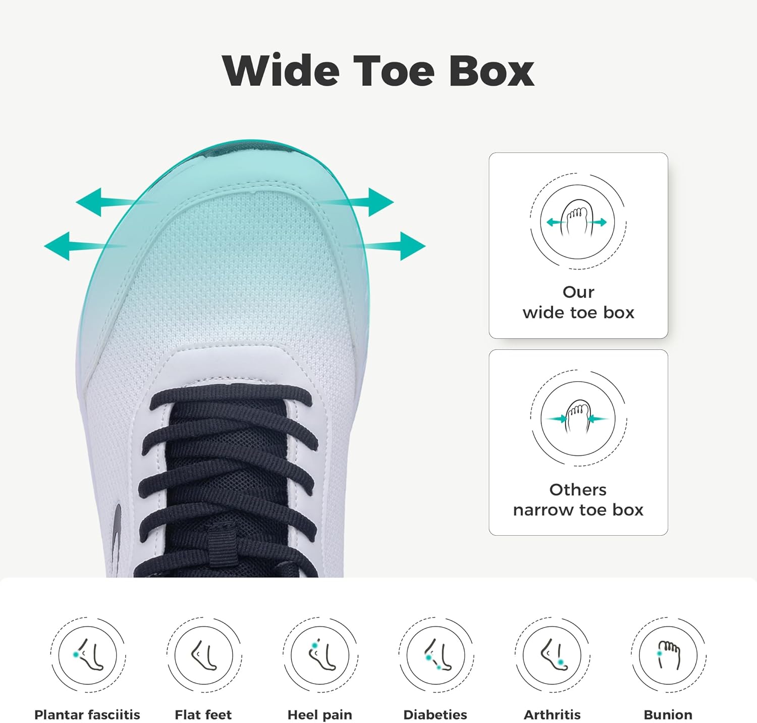 IIV Weite Zehenbox-Schuhe für Herren, Fußgewölbeunterstützung, Walking-Tennis-Sneaker, orthopädische Schuhe für Ballenzehen, Plantarfasziitis, Stehen den ganzen Tag 44.5 EU Weit Weiß Schwarz | قیمت یورویی 82.59€