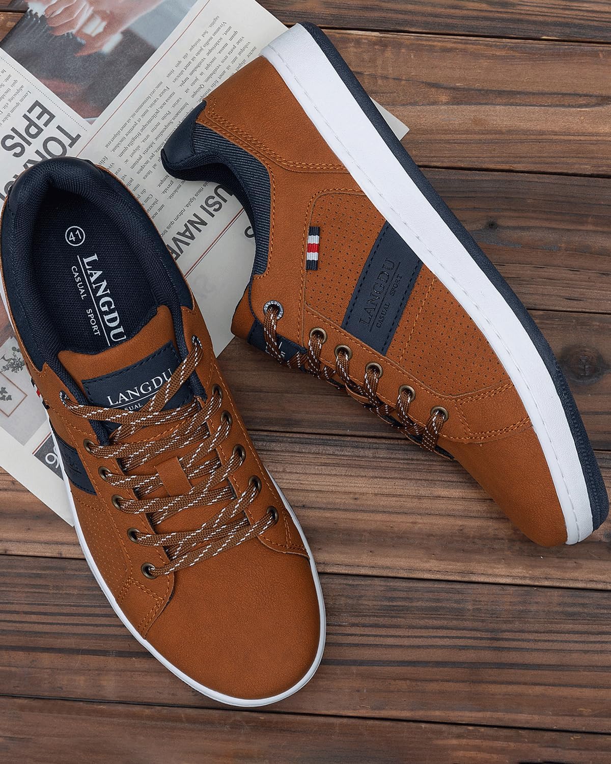 [Hochwertiges PU-Leder] Kunstleder mit einem einzigartigen Design sind diese modischen sneaker herren perfekt Ihre Fußform angepasst und sorgen müheloses Reisen. [Einzigartiges Merkmal] Herren Sneaker verfügen über ein hautfreundliches und atmungsaktives gestricktes Mesh-Futter sowie eine weiche Einlegesohle, die entwickelt wurde, Fußermüdung reduzieren Ihnen komfortables Erlebnis bieten. [Robuste Gummisohle] freizeitschuhe herren sind mit flexiblen Gummisohlen einem rutschfesten Muster ausgestattet, das effektiv die Reibung erhöht. Dieses Design bietet ausgezeichneten Halt und Dämpfung. [Atmungsaktiv und Bequem] Hergestellt aus einem fein strukturierten Material, weicher Einlegesohle und atmungsaktivem Futter, gewährleisten diese Herrenschuhe, dass Ihre Füße den ganzen Tag frisch und komfortabel bleiben. [Anwendbarer Einsatzbereich] Herren Freizeitschuhe eignen sich für verschiedene Aktivitäten wie Spaziergänge, Einkäufe, Reisen, lässige tägliche Routinen und alle anderen Gelegenheiten. | قیمت یورویی : 45.99€