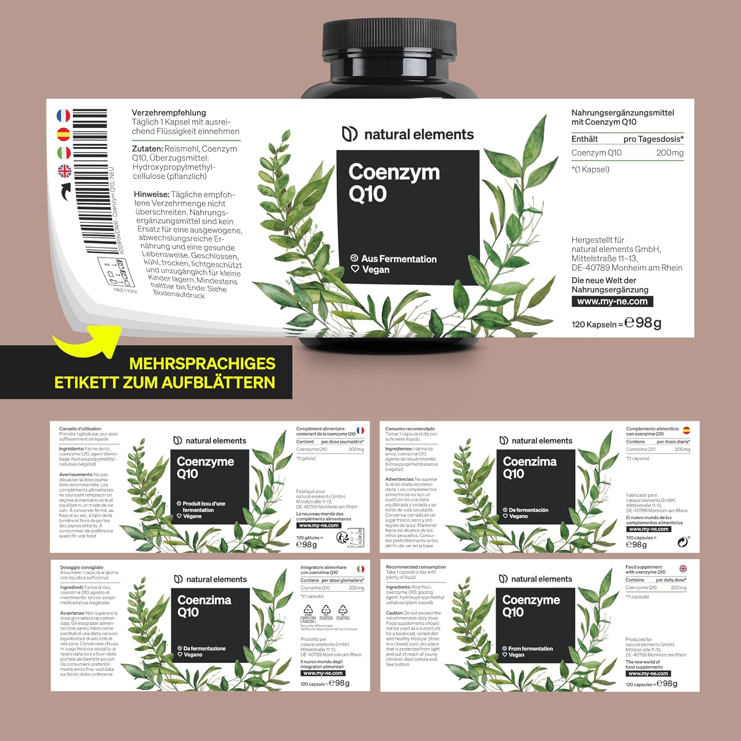 natural elements Coenzym Q10 – 200mg pro Kapsel – 120 vegane Kapseln – 4 Monate Reichweite – hochwertiges Q10 – hochdosiert, in Deutschland produziert & laborgeprüft Geschmacksneutral | قیمت یورویی 26.59€