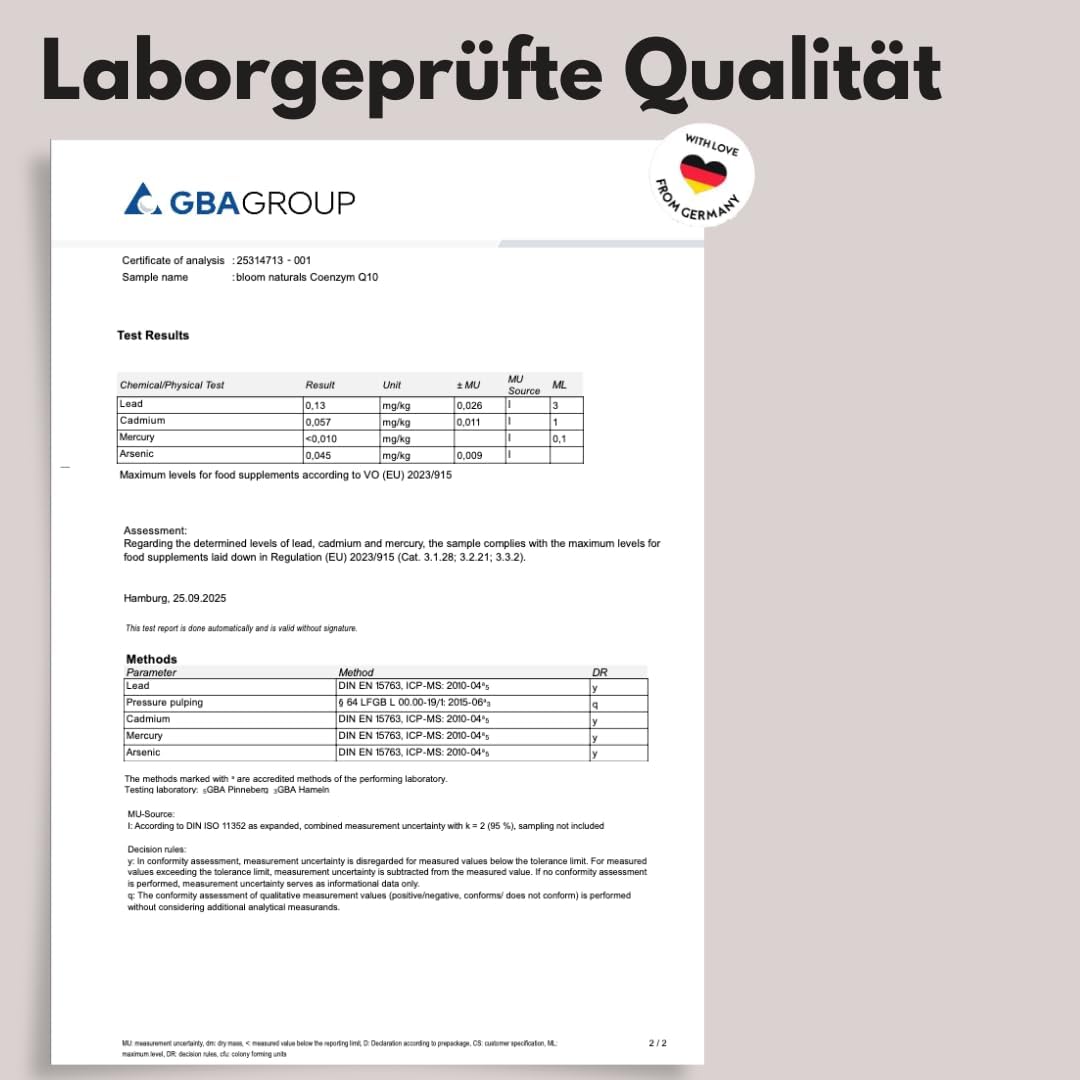 Eine sachliche Ergänzung für den Alltag mit unseren Coenzym Q10 Kapseln: Jede Kapsel enthält 200 mg Q10 und lässt sich unkompliziert in die persönliche Routine integrieren – ideal für alle, die ihre Ernährung gezielt ergänzen möchten. Geeignet für aktive Menschen und Sporttreibende. Hochwertige Inhaltsstoffe: Unsere Q10 Kapseln sind vegan und aus Fermentation gewonnen, ohne unnötige Zusätze. Genießen Sie die Reinheit und Qualität eines Produkts, das in Deutschland hergestellt wird und höchste Standards erfüllt Praktische Dosierung: Mit 130 Kapseln pro Packung bieten wir eine optimale Versorgung für mehrere Monate. Eine einfache Ergänzung Ihrer täglichen Routine, um Ihre Vitalität und Ausdauer zu unterstützen Coenzym Q10 kommt natürlich im Körper vor. Unser Q10-Pulver zeichnet sich durch hohe Qualität aus und lässt sich ideal in eine abwechslungsreiche Ernährung integrieren. Vertrauen und Qualität: Produziert in Deutschland, garantieren unsere Q10 Kapseln höchste Qualität und Sicherheit. Ideal für alle, die ein zuverlässiges und effektives Supplement suchen, das auf natürliche Weise unterstützt | قیمت یورویی : 20.76€