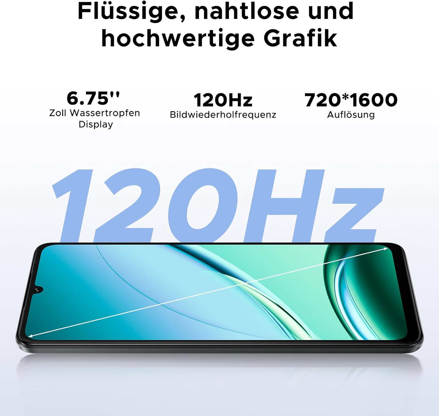 DOOGEE Note 59 Pro 5G Android 16 Handy Ohne Vertrag, 32 GB RAM + 256 GB ROM/TF 2 TB, 6250mAh Akku Smartphone, 120 Hz Display + 6,75 Zoll HD, 16 MP AI Kamera, 4K Video/NFC/Dual SIM/Face ID/Widevine L1 Schwarz(Android 16) | قیمت یورویی 189.99€