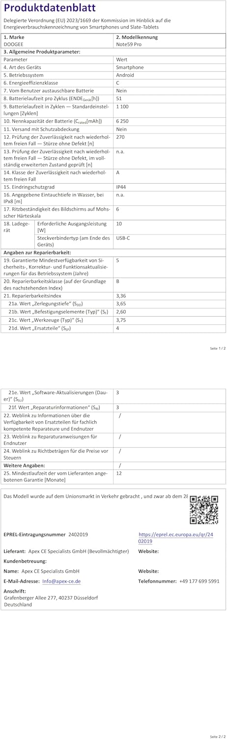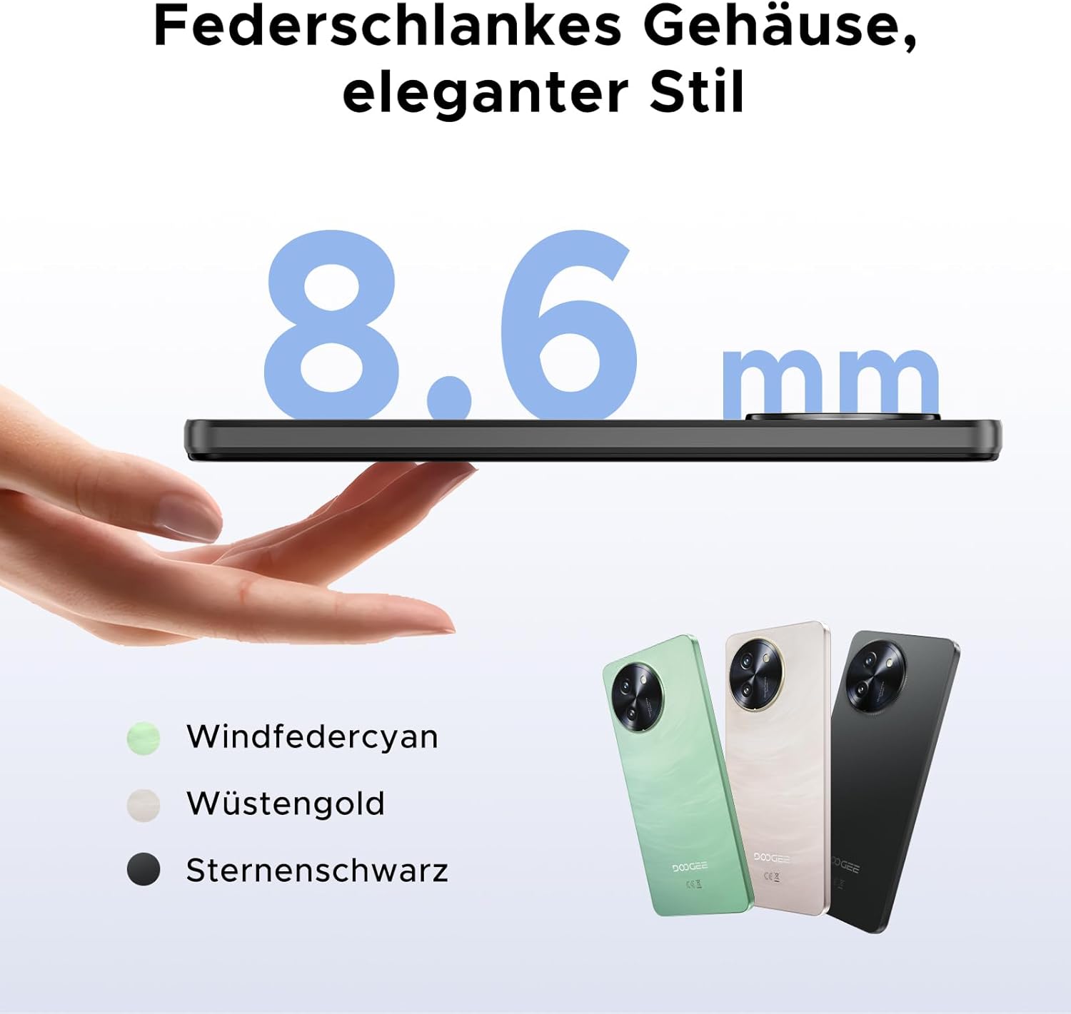 👑👑【5G und Android 16 Smartphone】Das DOOGEE Note 59 Pro Handy Ohne Vertrag unterstützt das 5G Netzwerk, Videoanrufe sind stabiler, die Latenz ist geringer, die Download-Geschwindigkeit ist 10-mal schneller als 4G, egal ob HD-Videos, große Spiele oder Cloud Office, sie können sofort geladen werden. Das Smartphone Ohne Vertrag Note 59 Pro ist mit Android 16 ausgestattet, um die App Berechtigungskontrolle zu verbessern, sensible Daten sicherer zu machen 🚀🚀【32GB RAM + 256GB ROM + TF bis zu 2 TB】Dieses DOOGEE Note 59 Pro handy verfügt über 32 GB (8 GB + 24 GB erweiterter virtueller Speicher), Sie müssen sich keine Sorgen über Langsamkeit aufgrund unzureichenden Speichers machen; Gleichzeitig kann der erweiterte Speicher Ressourcen dynamisch zuweisen und die Belastung entsprechend Ihrem tatsächlichen Bedarf reduzieren. 256 GB und 2 TB erweiterter Speicherplatz ermöglichen Ihnen hingegen das problemlose Hosten Ihrer HD-Fotos 🔋🔋【Ultradünner 8,6mm und 6250mAh Akku】Mit einem 6250mAh Akku können Sie auf diesem DOOGEE Note 59 Pro Handy Ohne Vertrag im Internet surfen, Videos ansehen, Spiele spielen und wichtige Anrufe tätigen. Mit nur einer einzigen Ladung können Sie es stundenlang nutzen. Zusätzlich zu seinem Akku mit hoher Kapazität verfügt dieses Android 16 Handy über ein ultradünnes 8,6mm Gehäuse, einen 6250mAh Akku und ein schlankes, kompaktes Design für die perfekte Balance aus schlankem Design 🖥️🖥️【6,75 Zoll HD & 120 Hz IPS Waterdrop-Bildschirm】Das DOOGEE Note 59 Pro Android 16 Smartphone verfügt über einen 6,75 Zoll großen Bildschirm, der 40 % größer ist als ein herkömmliches 5,5-Zoll-Mobiltelefon, ein beeindruckendes visuelles Erlebnis; Der 120Hz IPS-Waterdrop-Bildschirm gibt die Farben von Bildern und Videos originalgetreu wieder und die intelligente dynamische Bildwiederholfrequenzanpassung passt sich automatisch an die optimale Bildwiederholfrequenz an 💎💎【Unterstützt 4K-Video und Widevine L1】Das DOOGEE Note 59 Pro Widevine L1 5G Android 16 Smartphone Ohne Vertrag stellt eine vollständige Sicherheitsverbindung von der Übertragung bis zur Wiedergabe von Streaming-Medien mit Sicherheitsschutz auf Hardwareebene und Unterstützung von HD-Inhalten her; Das Telefon unterstützt die Wiedergabe von 4K-HDR-Inhalten auf Plattformen wie Netflix/Amazon Prime vollständig und im Vergleich zu L3-zertifizierten Geräten ist die Bildqualität um 300 % verbessert 📸📸【16MP+8MP AI Kamera & Gesichtserkennung】Die 16MP Kamera des Handy liefert brillante Bilder mit lebendigen Farben und scharfen Details, während die 8MP Kamera präzise und klare Fotos, mit Funktionen wie Wasserzeichen, Spiegel, Filtern und mehr, um der vielfältigen Natur Ihrer Fotografie gerecht zu werden. Dieses hochmoderne Mobiltelefon verfügt außerdem über die neuste Technologie zur Gesichtsentsperrung, mit der Sie es mit nur einem Blick und in bis zu 0,1 Sekunden entsperren können 🔥🔥【Funktionale Vielfalt】Dieses tragbare Smartphone DOOGEE Note 59 Pro ist außerdem mit leistungsstarken Funktionen wie NFC, BT5.0, WLAN, OTG, GPS, seitlicher Fingerabdruck-Entsperrung, Gesichtsentsperrung und mehreren intelligenten Gesten ausgestattet, sodass Sie das DOOGEE Handy Note 59 Pro 5G erkunden und verwenden können. Mit dem Kauf des DOOGEE Note 59 Pro Android 16 Smartphones erhalten Sie außerdem eine transparente TPU-Hülle, die Ihr Telefon schützt | قیمت یورویی : 189.99€