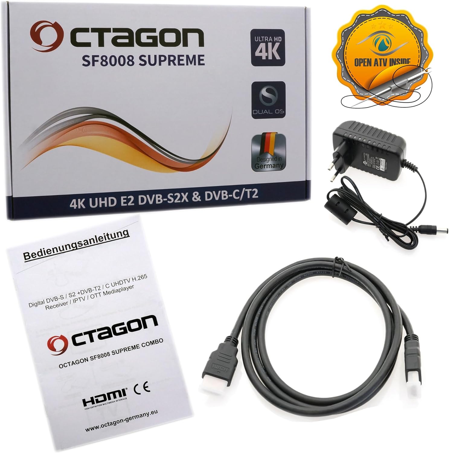 OCTAGON SF8008 4K UHD HDR Combo Receiver 1x DVB-S2X und 1x DVB-C/DVB-T2 - Satellit, Kabel/Terrestrisches Signal, E2 Linux Smart TV, Media Server, Aufnahmefunktion, EasyMouse HDMI, Dual | قیمت یورویی 129.9€