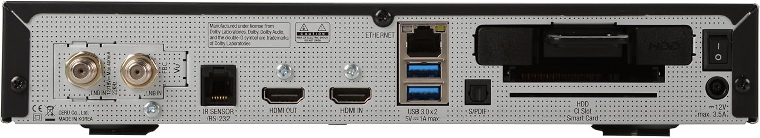VU+ Uno 4K یک تیونر ضبط کامل باند (FBC) را برای تعویض سریع کانال، یک صفحه نمایش LCD 2.4 اینچی TFD و یک قاب قابل جدا شدن برای هارد دیسک های 2.5 اینچی ارائه می دهد. فناوری اتصال: USB، HDMI رنگ: مشکی