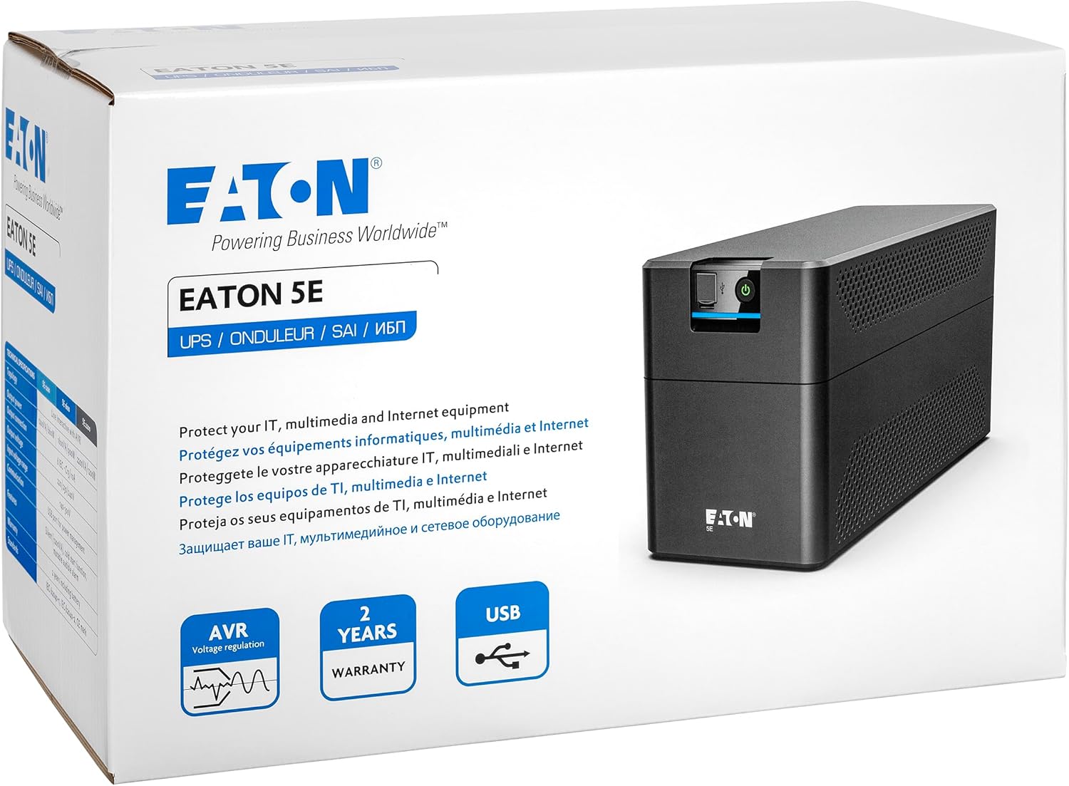 یو پی اس Eaton 5E Gen2 900 USB DIN - منبع تغذیه بدون وقفه Line-Interactive - 5E900UD - 900VA (2 سوکت DIN، بیصدا، نرمافزار خاموش کردن)