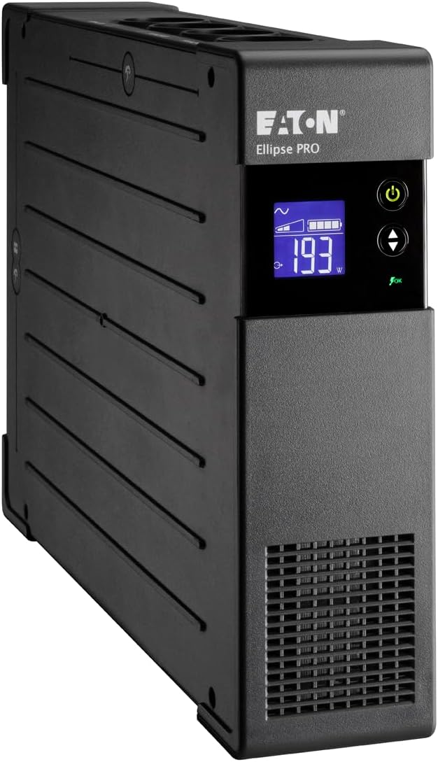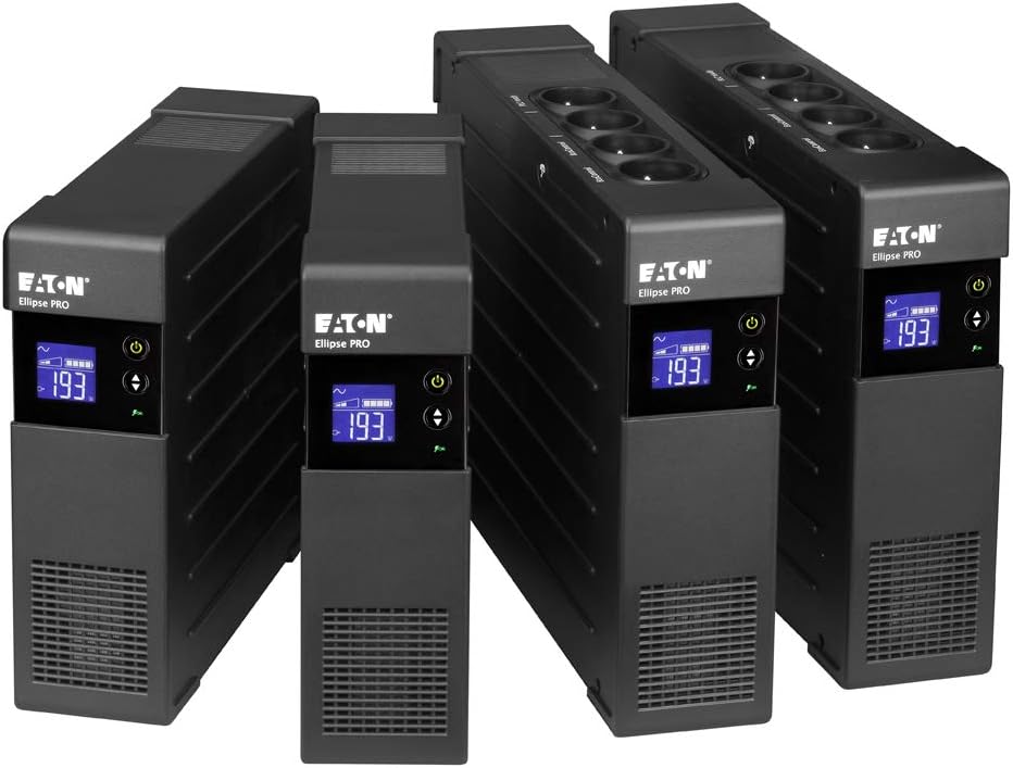 Eaton USV Ellipse PRO 1600 DIN - Line Interactive USV - ELP1600DIN - 1600VA - (8 IEC Ausgänge) - Spannungsregelung (AVR) - USV mit Display und USB-Schnittstelle (inkl. USB-Kabel) 1600VA USB / DIN لینک آمازون : https://www.amazon.de/dp/B00CTFTL68?th=1&psc=1 ۱۶۰۰ ولت آمپر / ۱۰۰۰ وات ۸ خروجی شوکو: ۴ برابر محافظت در برابر نوسانات برق + باتری پشتیبان، ۴ برابر محافظت فقط در برابر نوسانات برق، محافظت از تلفن/فکس/مودم/خط شبکه ۱۰/۱۰۰ (RJ45) نمایشگر، رابط USB، شامل کابل USB و نرمافزار فن به طور دائم فعال ۳۶ ماه گارانتی شامل باتری
