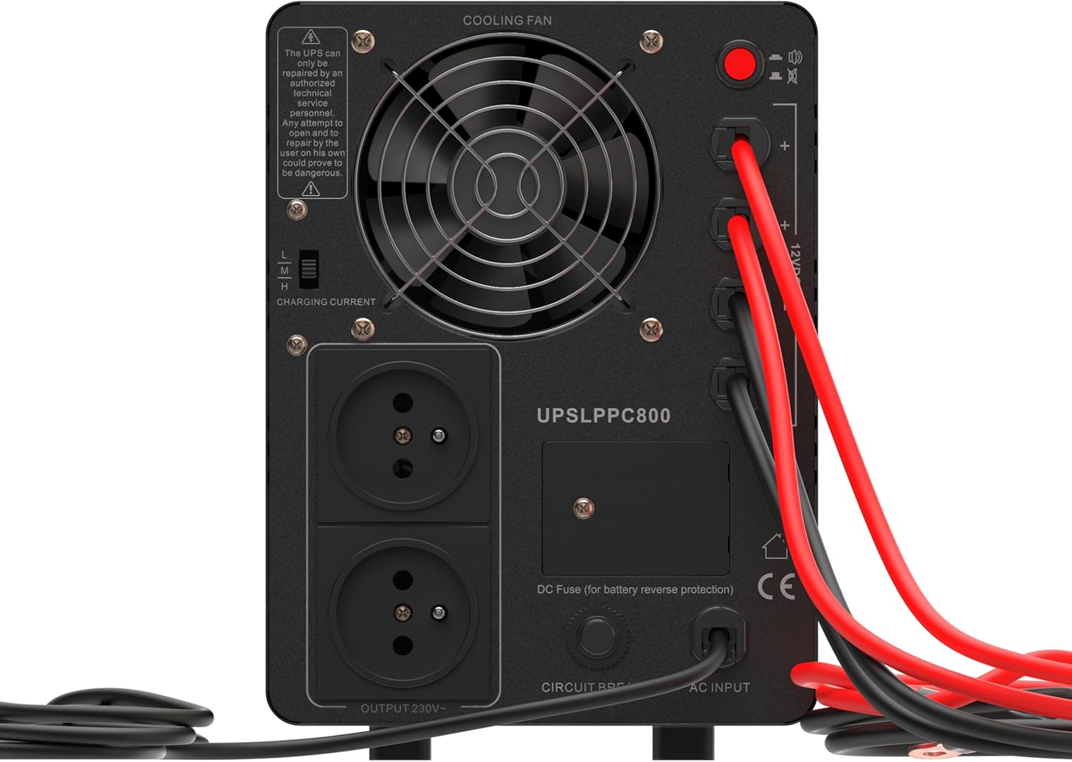 Zuverlässige Notstromversorgung für Ihr Zuhause Mit 800W/1200VA schützt dieser UPS Ihre Geräte zuverlässig vor Stromausfällen, Spannungsspitzen und Überhitzung. Ideal für Heimnetzwerke, Bürogeräte oder Sicherheitssysteme – Ihre Technik bleibt sicher und einsatzbereit. Erfordert externen Akku – individuell anpassbare Laufzeit Für den Betrieb ist ein separat erhältlicher externer Akku erforderlich – das Gerät funktioniert nicht ohne zusätzliche Stromquelle. Dadurch können Sie die Kapazität flexibel anpassen und selbst entscheiden, wie lange Ihre Geräte im Notfall weiterlaufen sollen. Reine Sinuswelle – sicher für empfindliche Geräte Der PowerCore liefert sauberen, sinusförmigen Strom – ideal für Geräte wie PCs, Server, Kühlschränke oder Heizungssysteme. Keine Aussetzer oder Schäden durch unstabile Spannung mehr! Intuitives LCD-Display mit Statusanzeige Das moderne LCD-Display informiert Sie in Echtzeit über Ladezustand, Spannung und Betriebsmodus. So haben Sie jederzeit die volle Kontrolle – ganz ohne komplizierte Einstellungen. Auf der Rückseite befinden sich zwei 230V Schuko-Steckdosen für Ihre Geräte sowie DC-Klemmen (+/-) zum Anschluss eines externen 12V DC Akkus – dieser ist obligatorisch, da das Gerät ohne Akku nicht betrieben werden kann. Zusätzlich verfügt das Gerät über einen dreistufigen Batterieladestrom Schalter (niedrig/mittel/hoch), | قیمت یورویی : 195.44€
